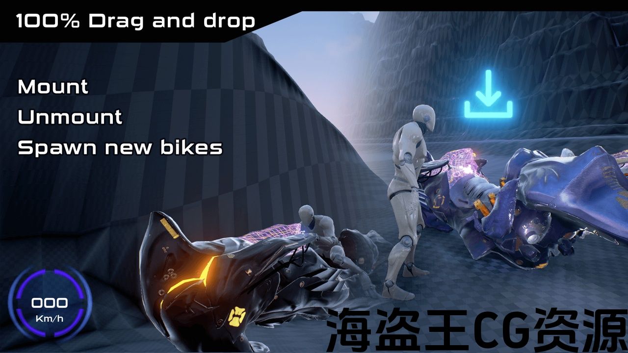 如果你想创建一个赛车游戏,需要任何类型的未来自行车被允许悬浮,那么这是你需要的包。 这是一个随时可用的解决方案,它配备了一个完整的框架来驱动一辆脚踏车,从蓝图到游戏准备好的资产,随时可以在你的项目中使用。