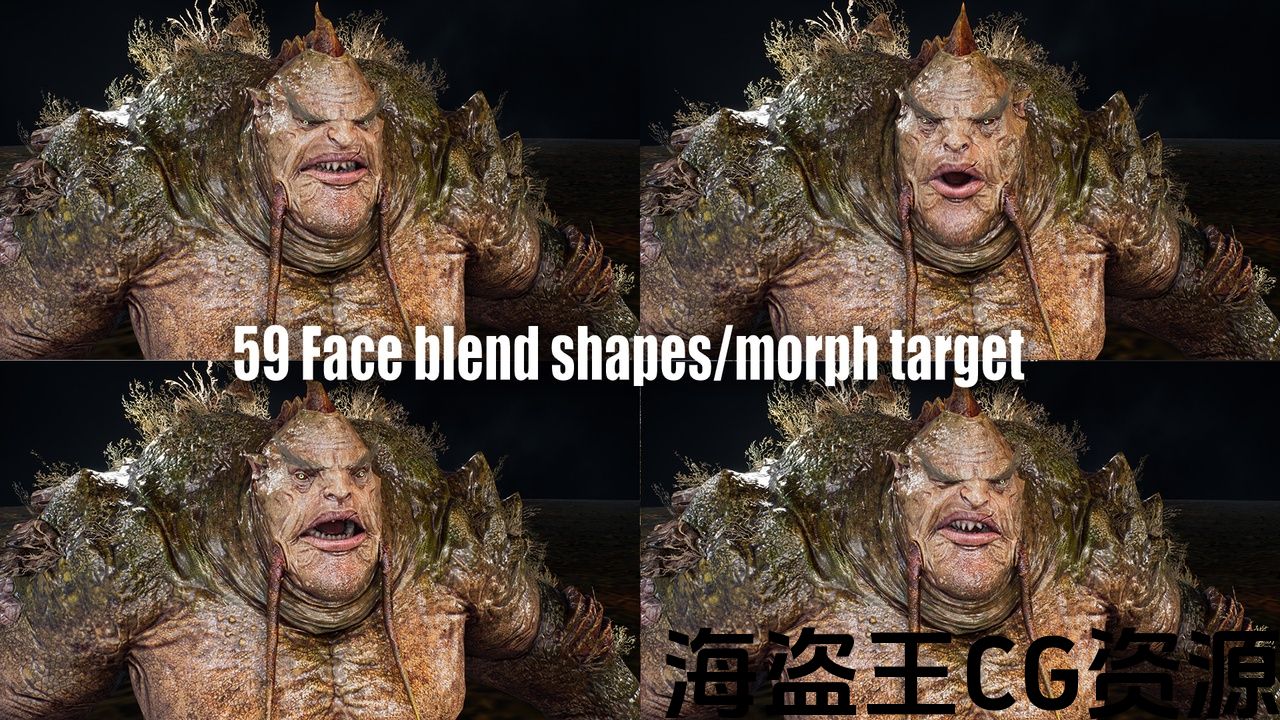 - 59脸部混合形状/变形目标 (支持来自Apple的LiveLink Face)