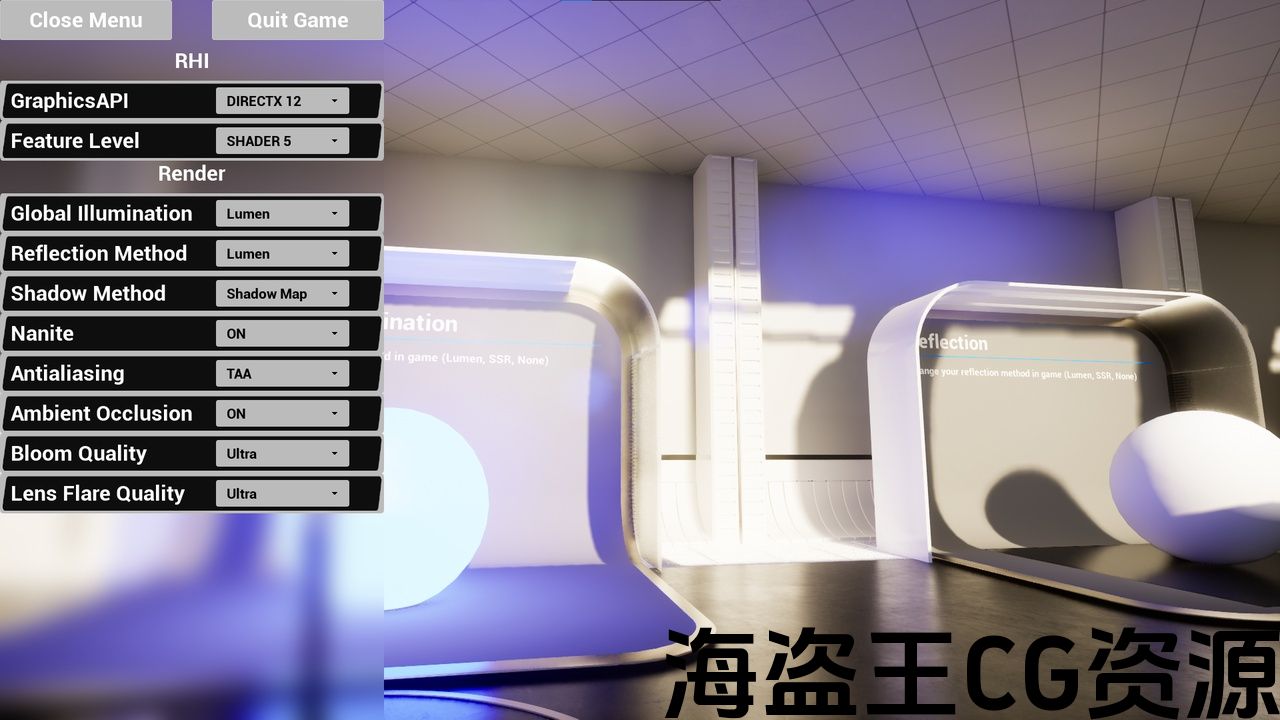 该产品是虚幻引擎的插件,允许您在游戏中自定义引擎的各种设置和功能。 您可以更改图形API,启用或禁用光线追踪、纳米粒子、全局照明、阴影、反射、抗锯齿和其他后处理效果。 您还可以在不同的着色器模型和功能级别之间切换,以优化您的游戏性能。 此插件可让您更灵活地控制虚幻引擎项目的视觉质量和性能。
