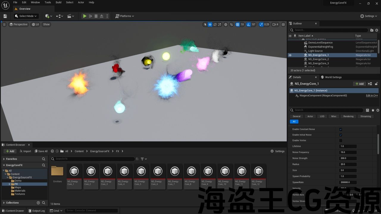 12 Energy Core Niagara effects.