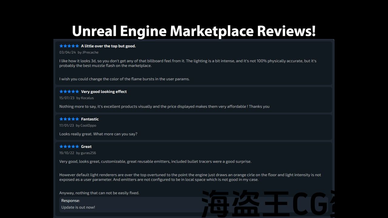 20 Muzzle Flash effects for Handguns, SMG’s, Assualt Rifles, Snipers, Shotguns etc. Can be scaled to fit larger weapons but may need some tweaking to look correct, Custom Parameters are available to make this easy to do. all particle systems are made in Niagara.