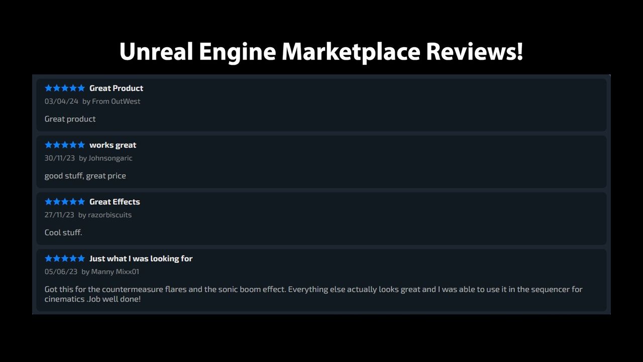 Demo scene included which has all the FX hooked up to a futuristic jet that you can play around with, check Youtube video.