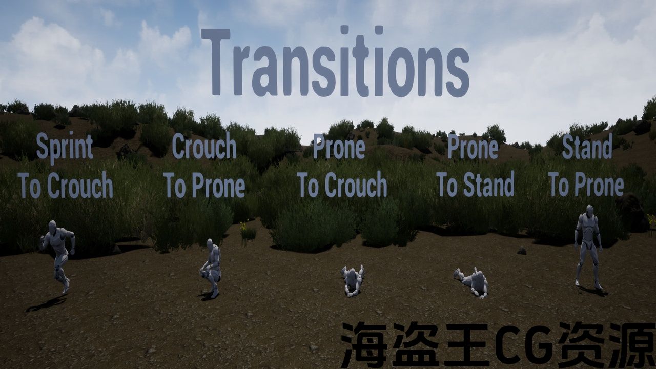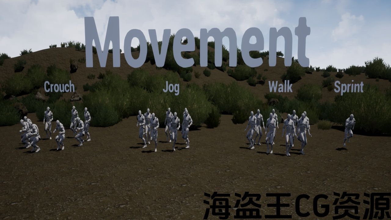 - 5种不同的运动模式(冲刺,跑步,步行,蹲伏,俯卧)