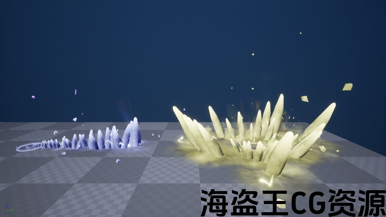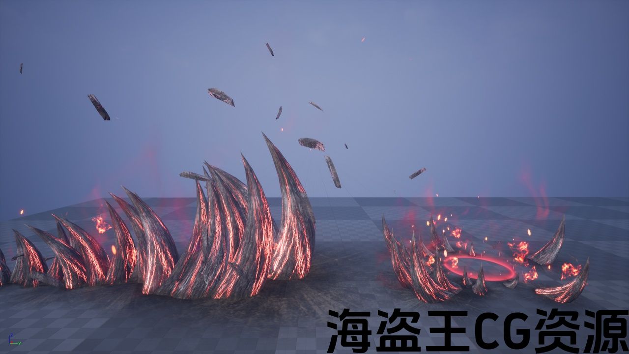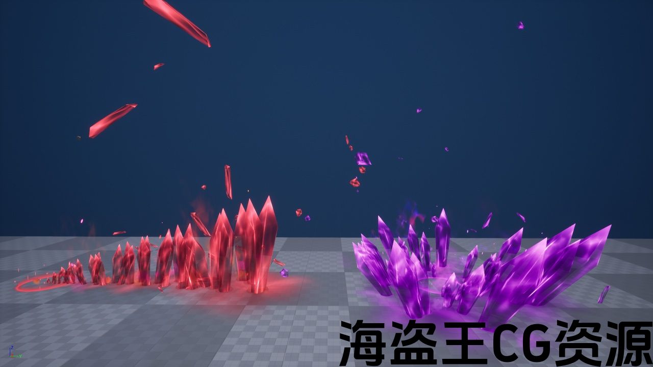 It includes some low polygon type ground spike effects, as well as fire, water, light and lightning type strike effects. Some parameters can be customized.