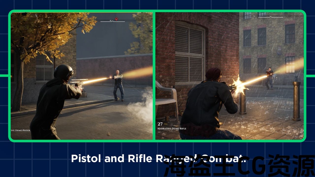叙事兵工厂,一个战斗系统 使用史诗建造 游戏能力系统 插件, 其中包括对近战和射击风格战斗的支持,无论你是制作中世纪RPG还是现代射击游戏!