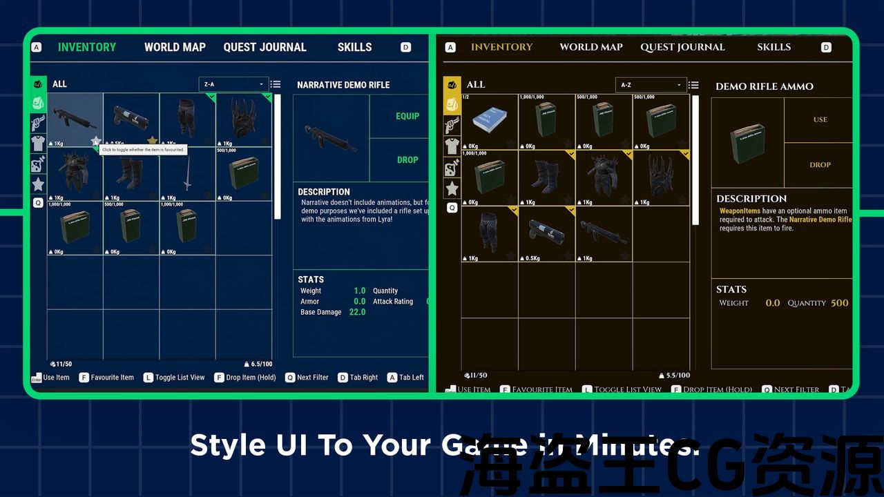 叙事库存,一个网络化的库存系统 它支持你能想象到的任何类型的项目。 Narrative Pro包括装备物品,武器物品,可读书籍,消耗品等。