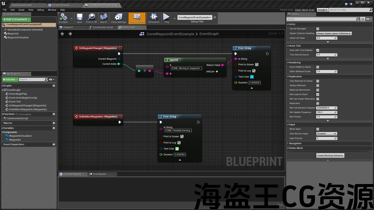 在actor旅行时,使用航点更改和移动完成事件(需要蓝图,但完全可选)执行蓝图启用的任何操作。