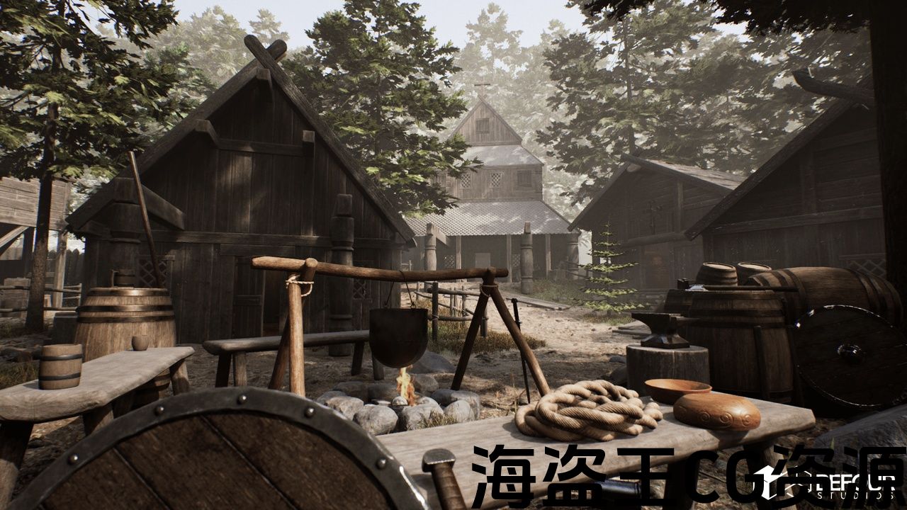沉浸在 中世纪北欧村庄环境,具有真正的维京时代的木制模块化房屋与内部和道具,优化的高性能跨平台。