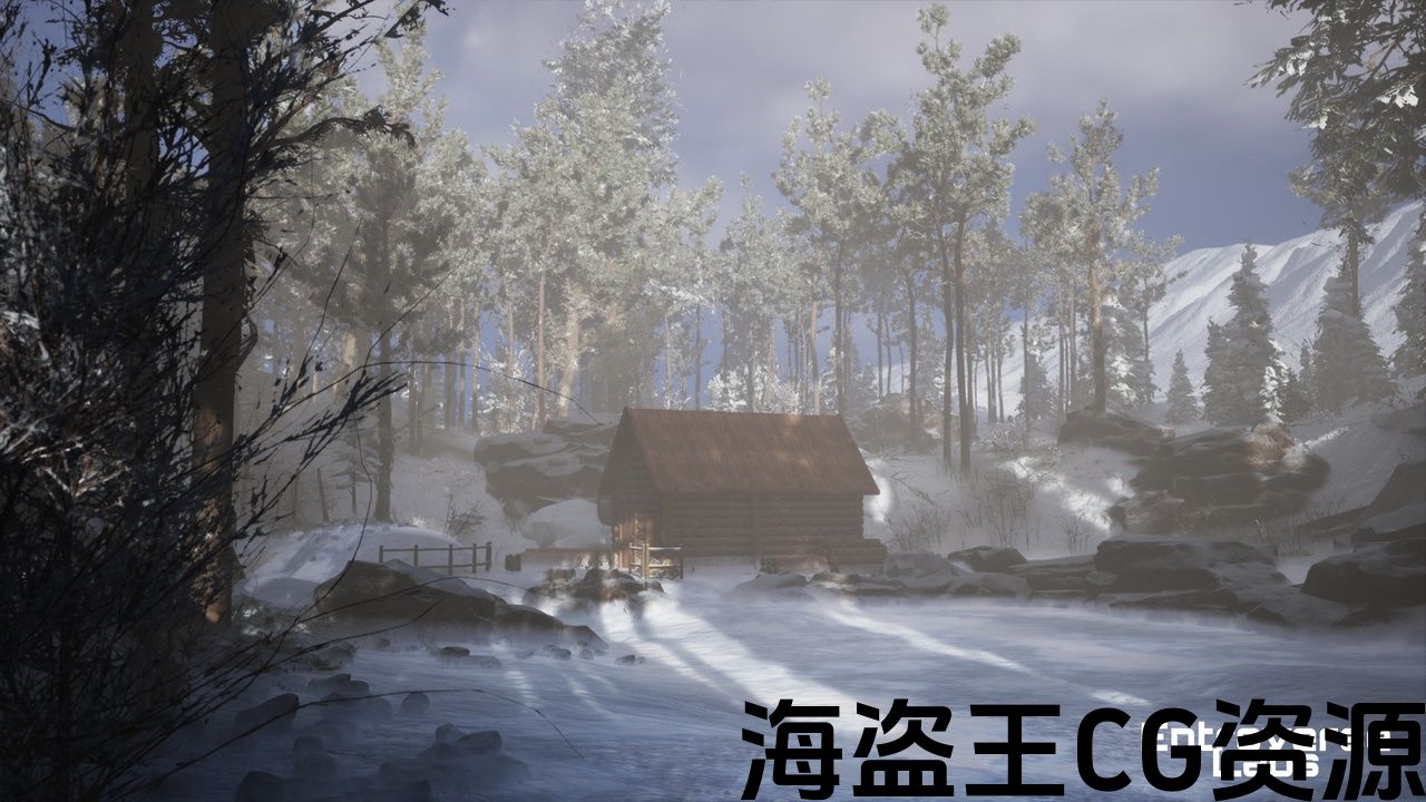 这个包包括各种高质量的资产,如雄伟的松树,岩石露头,雪堆和一个古色古香的木制小木屋,非常适合创造丰富,大气的场景。