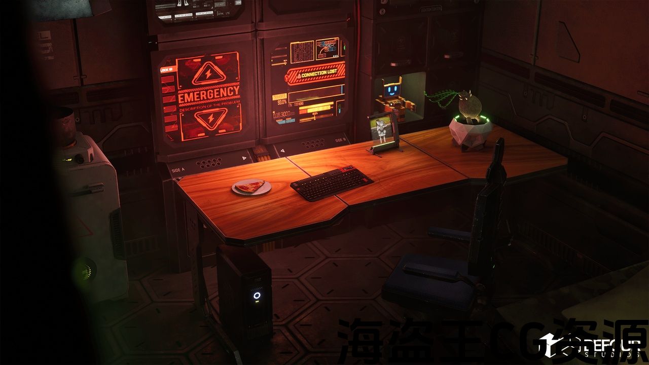 科幻工程师的房间故事 : 曾经有一位科学家工程师非常想念他的家人。 在他的办公桌上,他保留了他女儿的全息图,在他的床上坐着一只电子人熊,提醒她。 他的架子上还有一个叫RobbyCube的机器人,他女儿最喜欢的卡通人物。 在他的整个空间里,有一些小迹象让他想起了他的家人,保持了他们的记忆。