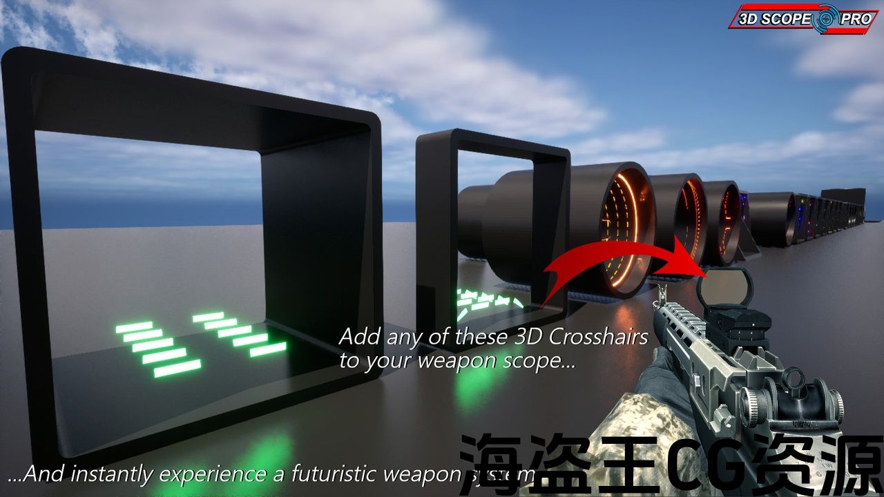 将这些3d十字线材料中的任何一个添加到您的武器范围中,以立即体验未来的武器系统。