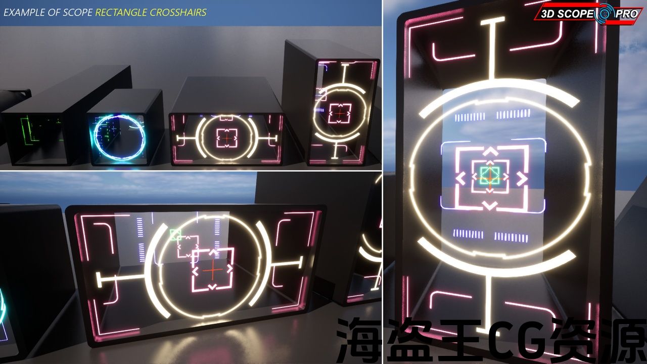 Add any of these 3D crosshairs Materials to your weapon scope to instantly experience a futuristic weapon system.