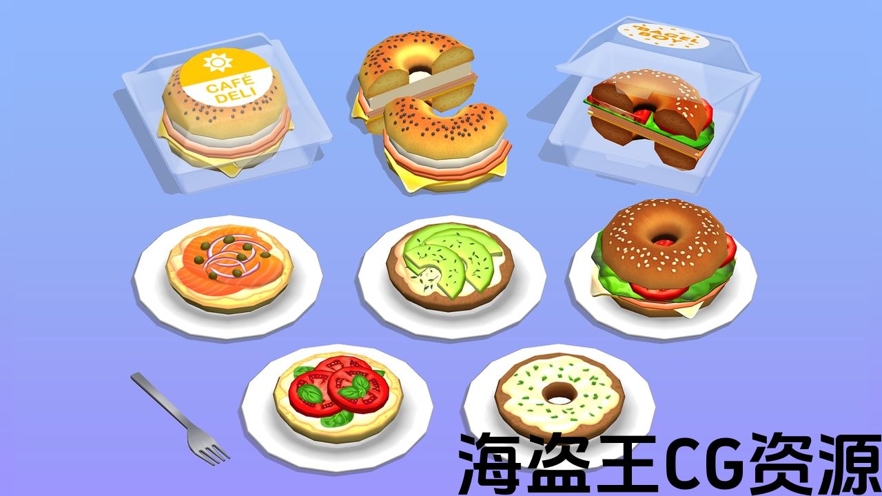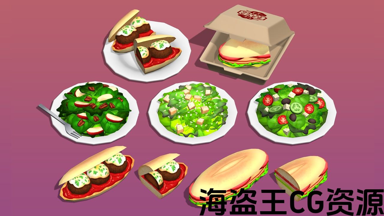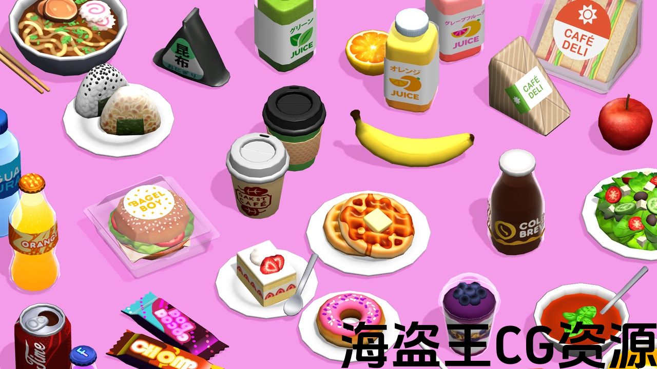 • 55种食物模型,有切割、切片和颜色/味道的变化。