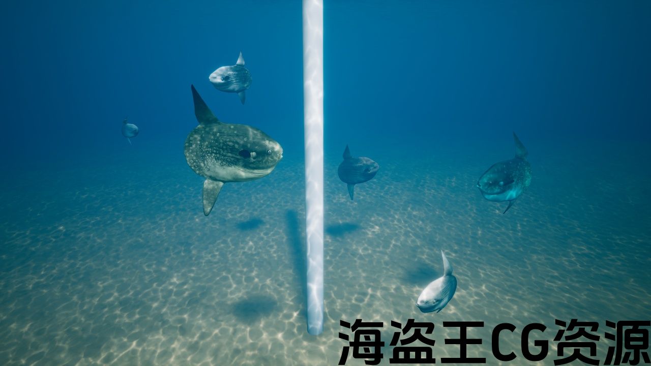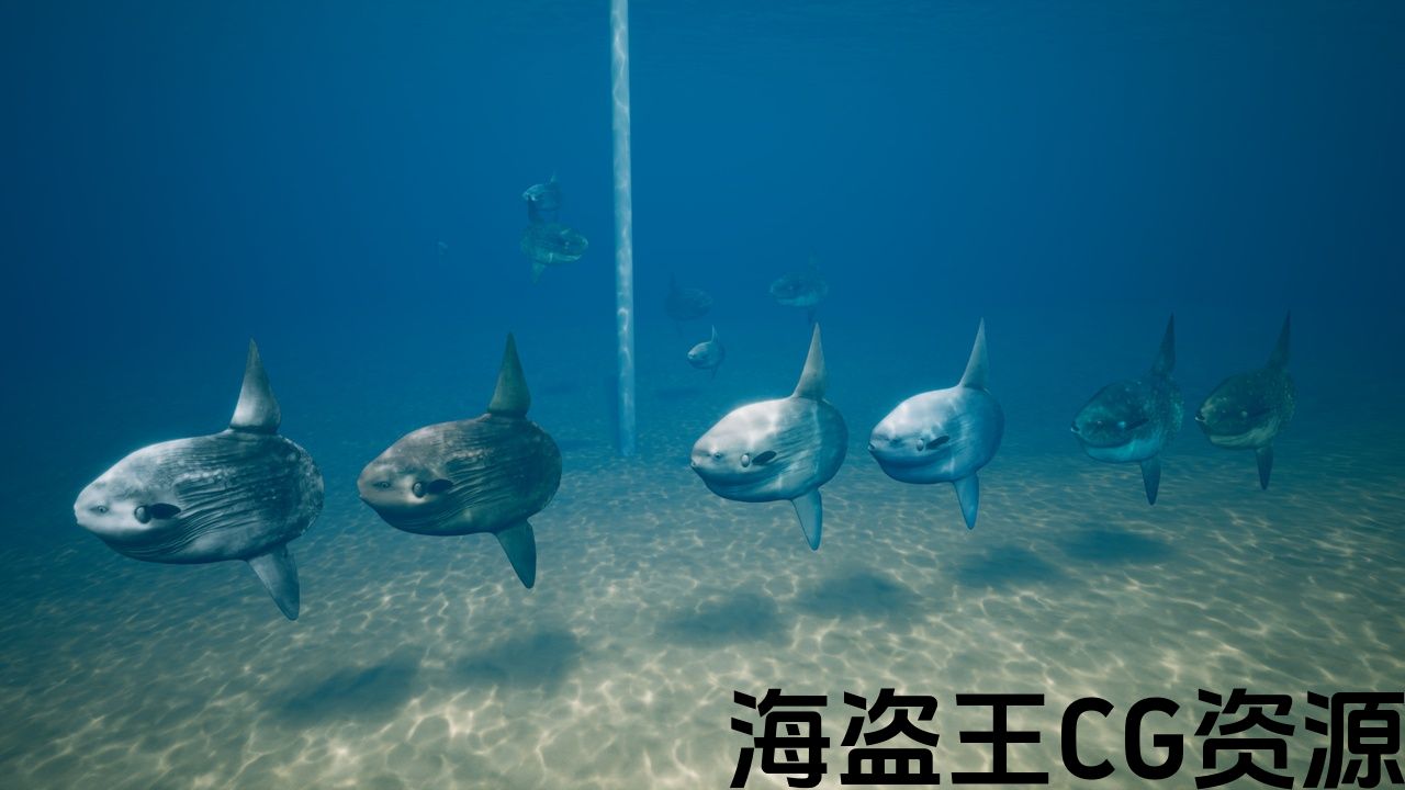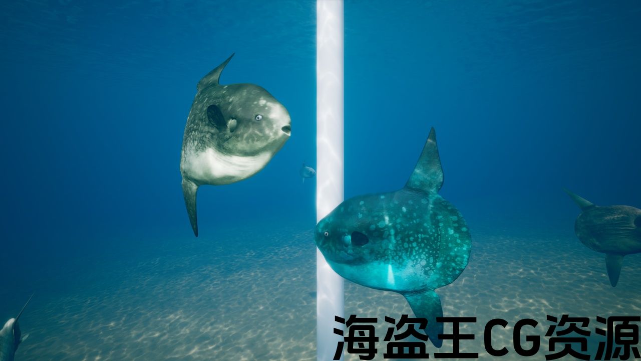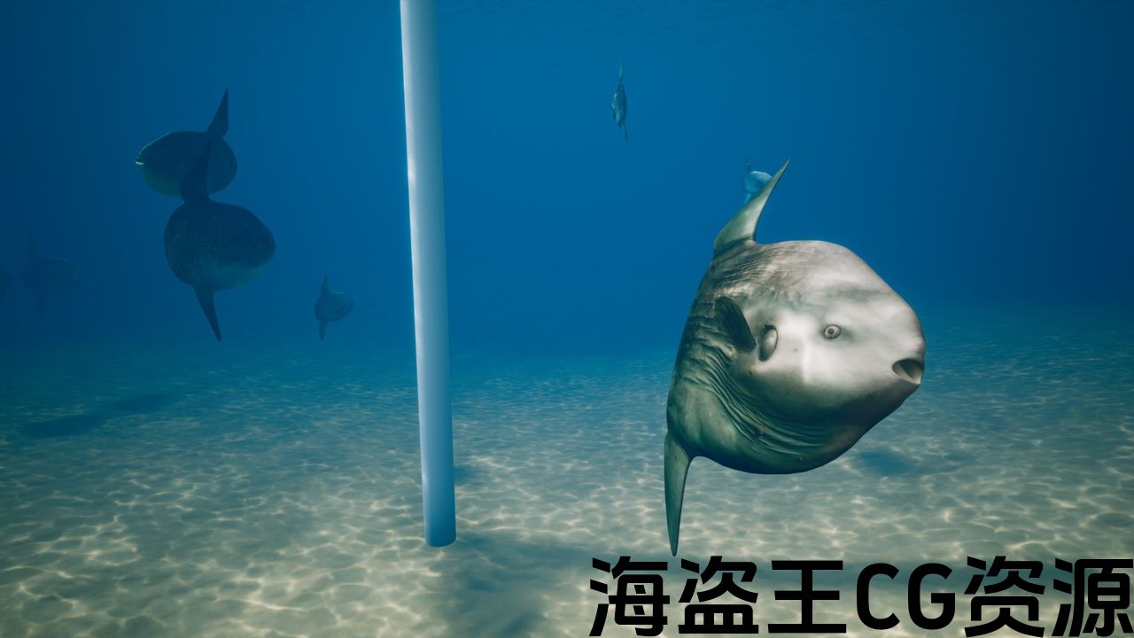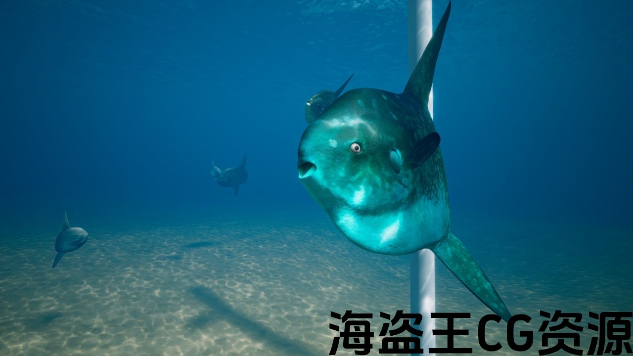 这个海洋翻车鱼带有一个程序样条动画系统,产生动态加速,旋转和滚动沿样条。