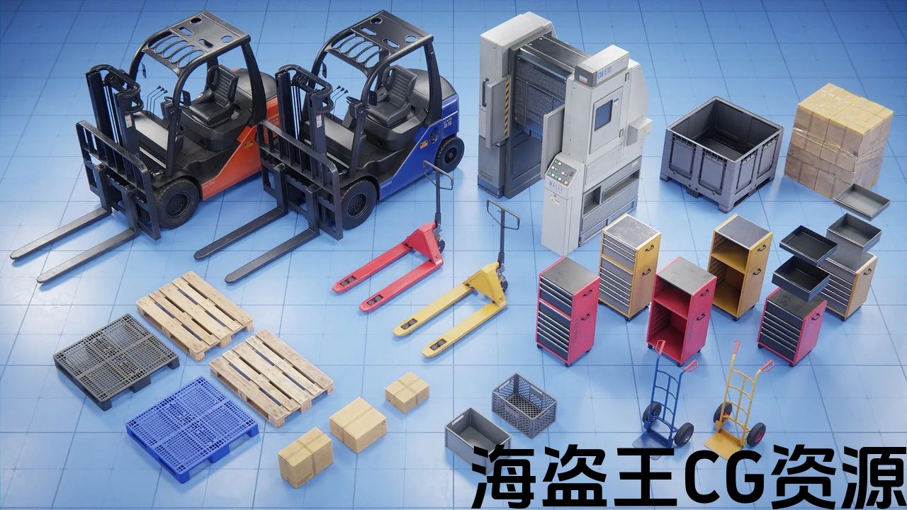 这个包包含50个网格和54个预制件,可用于填充工厂或仓库内部。