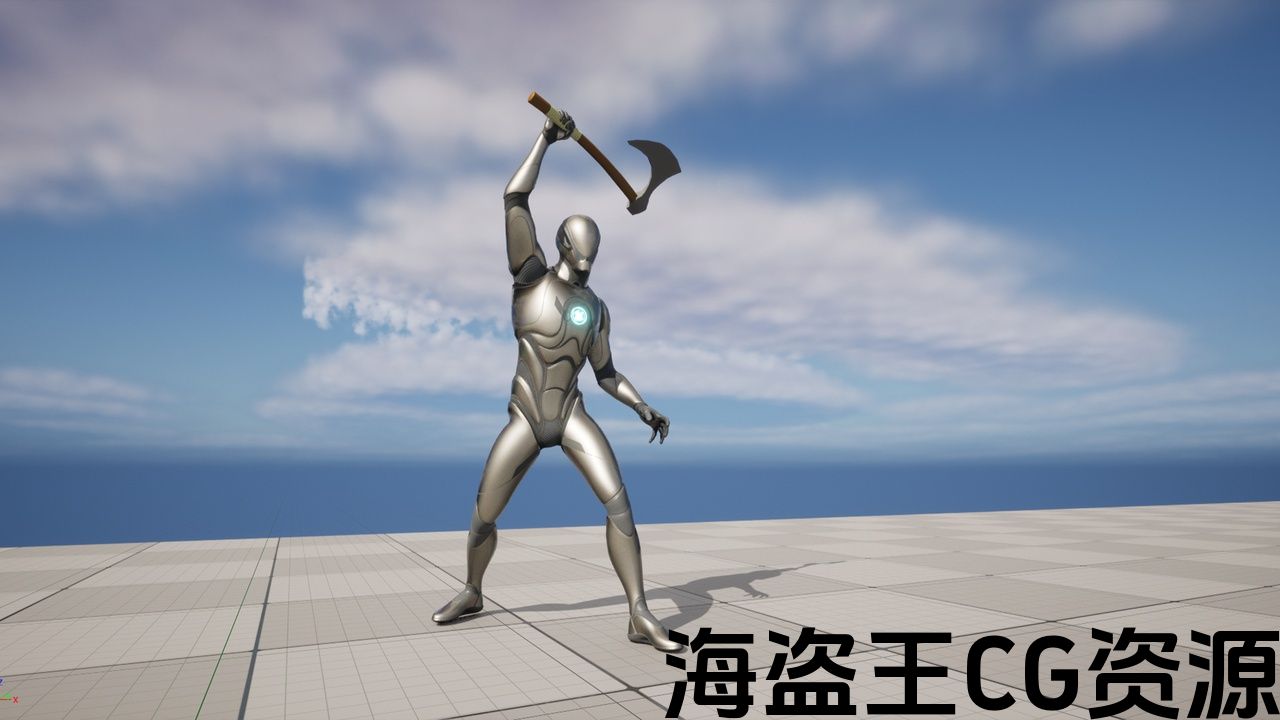 这个包有风格化的斧头攻击动画,你可以在你的游戏中使用。 该包包含15个攻击动画以及空闲,跳跃和运行动画。 斧头附着在角色的ik_hand_gun骨骼上并随之移动。