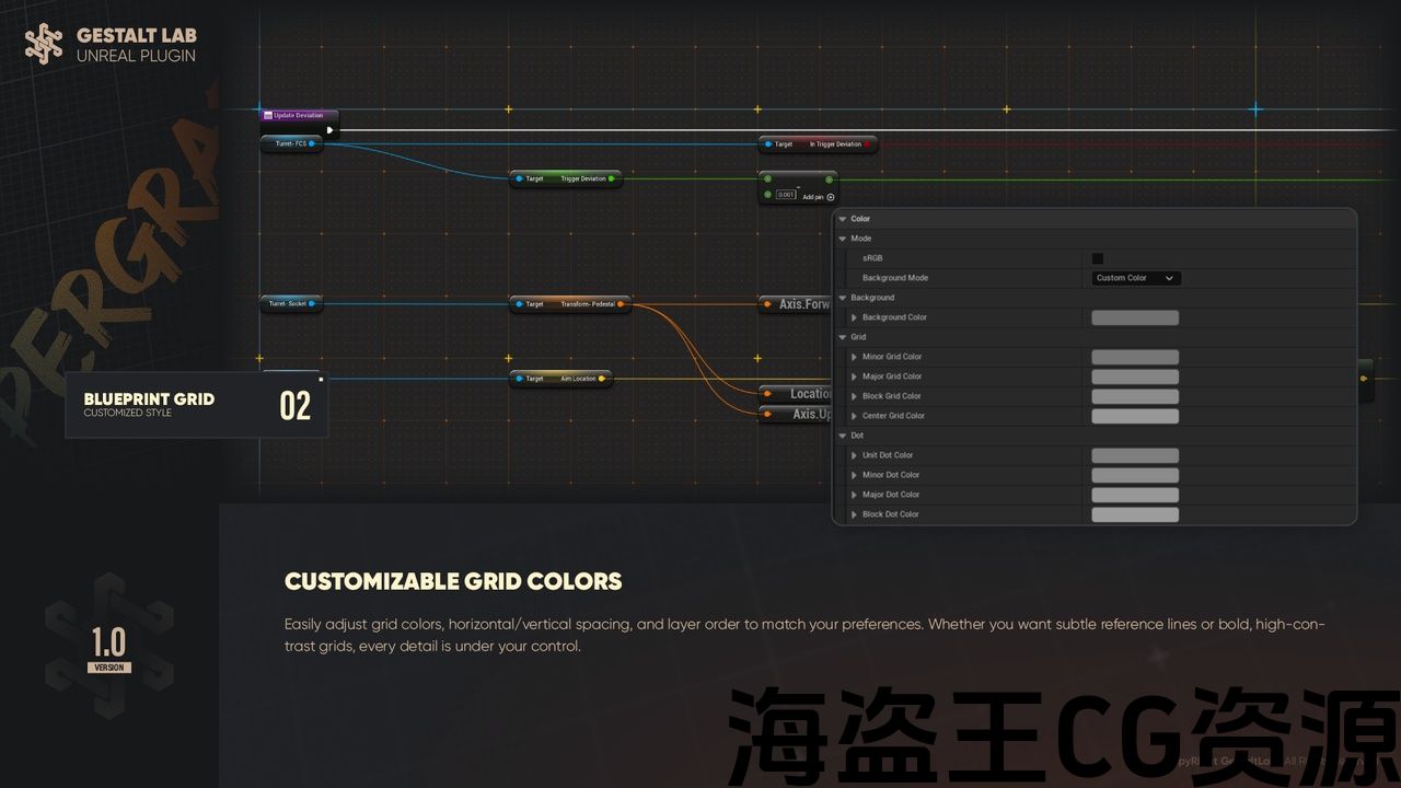 厌倦了每次打开虚幻引擎时默认的蓝图背景? 沉闷的图形和无益的辅助工具是否让您厌倦了通过计算网格方块来对齐节点? 试试这个自定义网格系统插件!