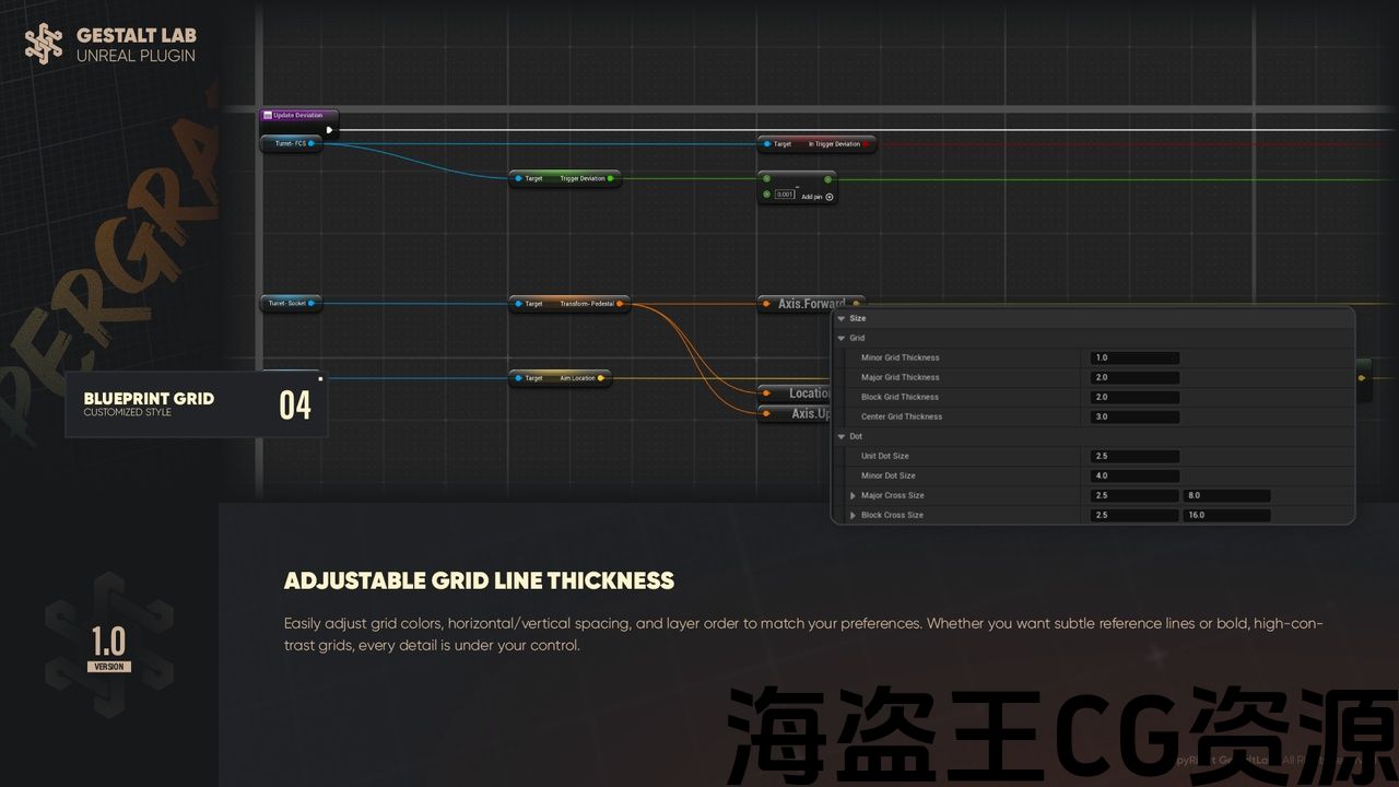 Revolutionize the blueprint grid system in Unreal Engine with our Custom Blueprint Grid System Plugin! This plugin provides developers with a brand-new blueprint grid system. We’ve replaced the smallest layer of crosslines with dot matrices – now horizontal lines only appear on larger grid squares, helping you quickly align nodes both horizontally and vertically.