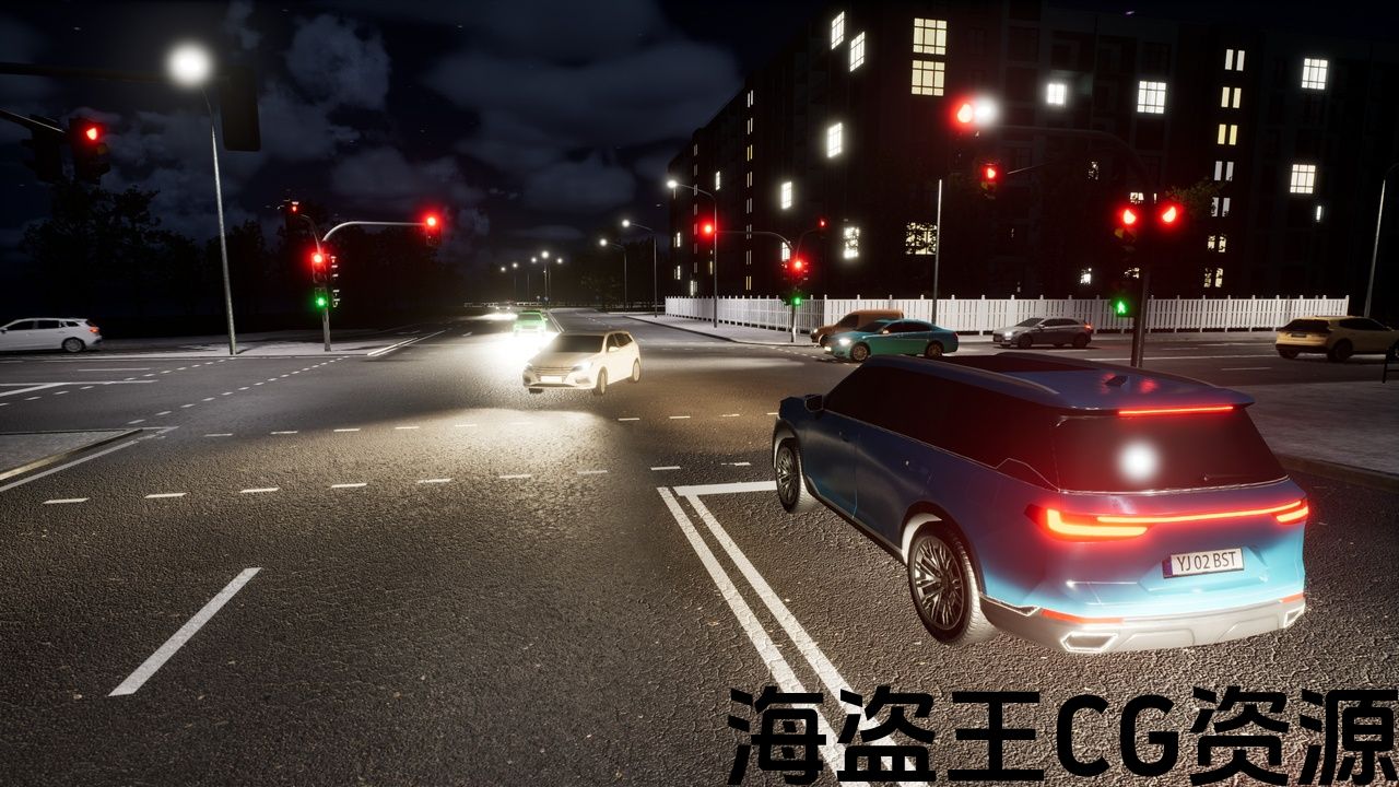 无缝日夜集成 -BP_Day_Night_Cycle旋转太阳,控制路灯和汽车灯。 夜间交通密度自动下降.