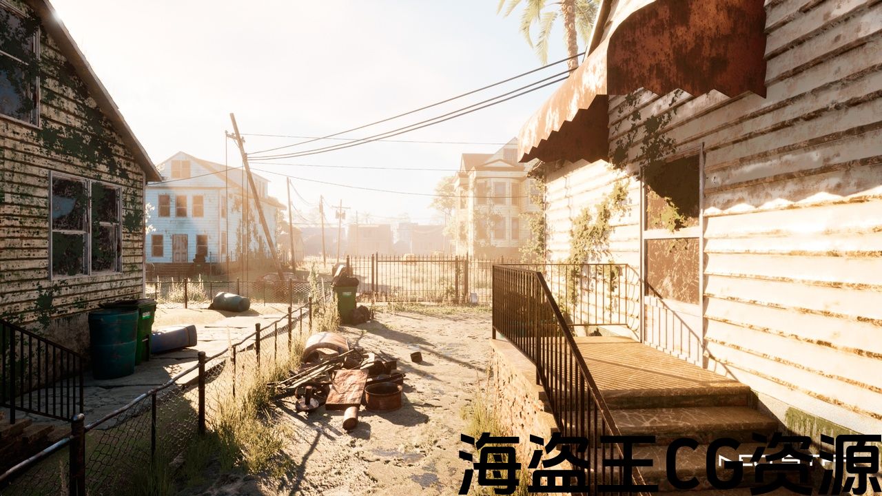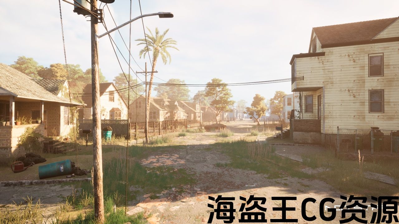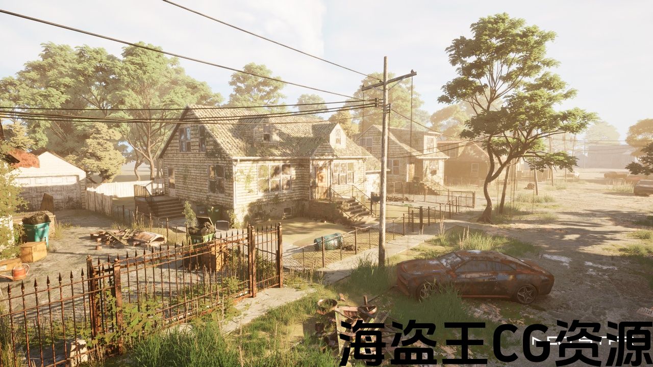 一个精心制作的虚幻引擎5环境展示了废弃的,风化的家园和杂草丛生的街道,丰富的大气细节。 非常适合生存,恐怖和开放世界后世界末日主题游戏或电影项目。