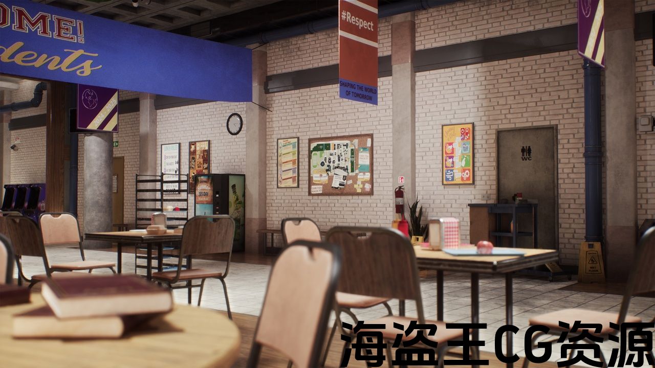 学院食堂-食堂 环境与193个独特的网格。 这包括所有展示的资产,具有良好细节水平的高质量资产,以及为游戏就绪项目优化的资产。