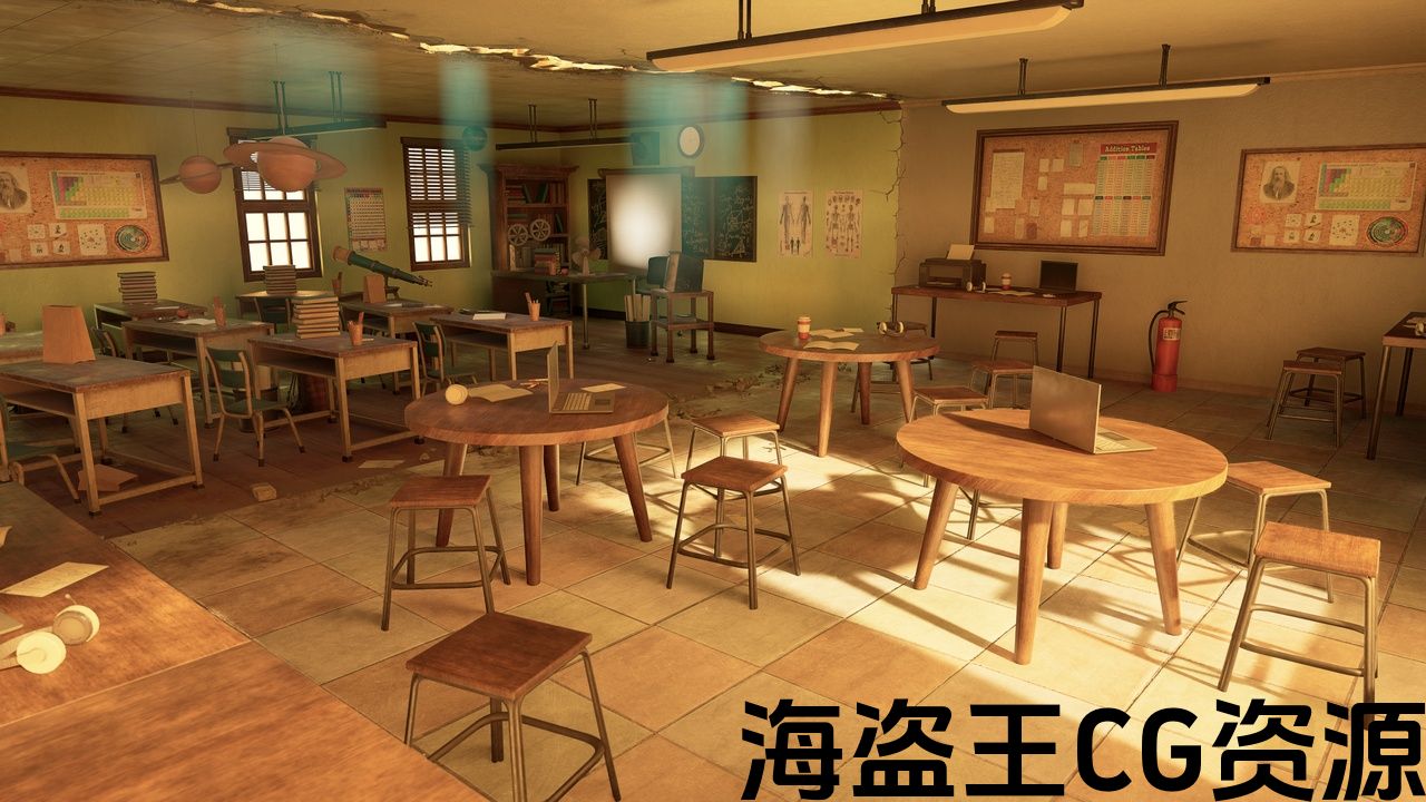 复古/现代教室内部与130个独特的网格。 包括所有展示的资产,高质量的资产。 具有良好的细节水平和优化的游戏准备项目。