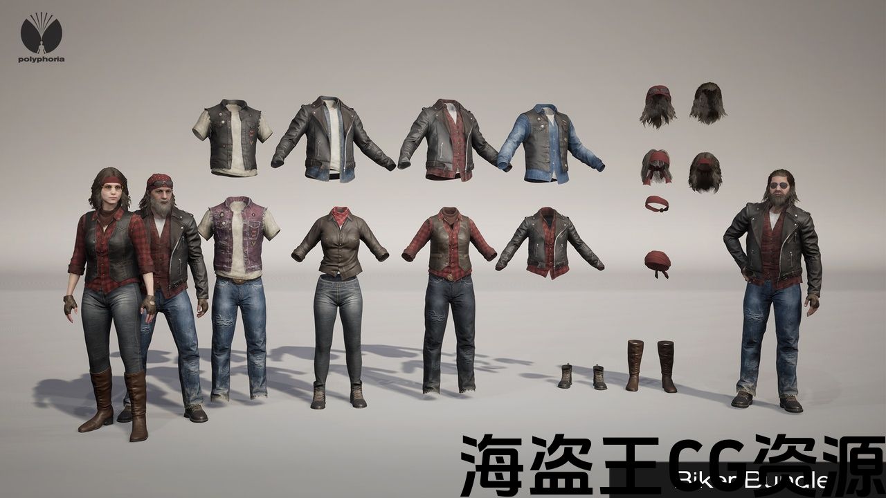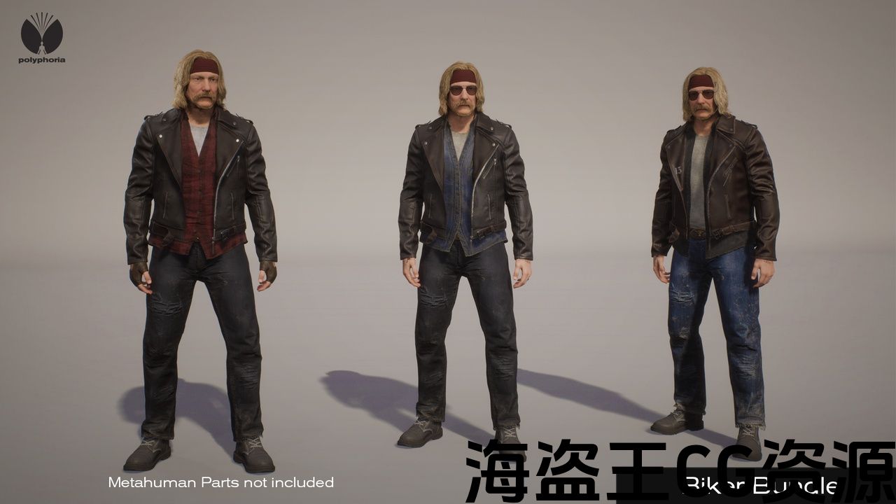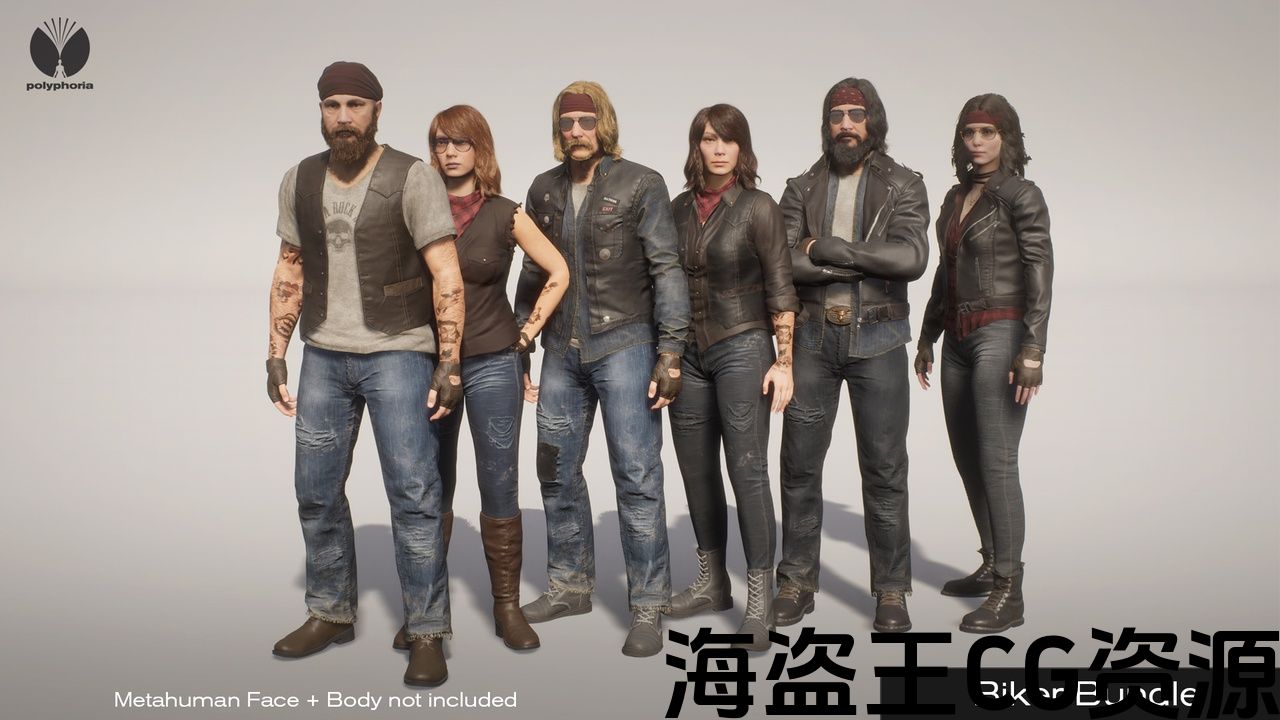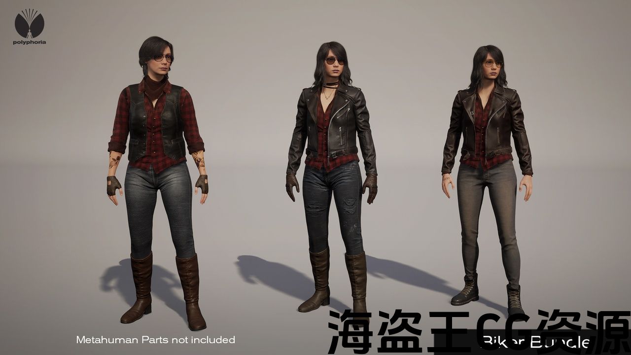 The Biker Bundle comes with dresses for male and female. The collection is a stand alone version without Character Editor required. It does work with our UE5 Skeleton proportions.