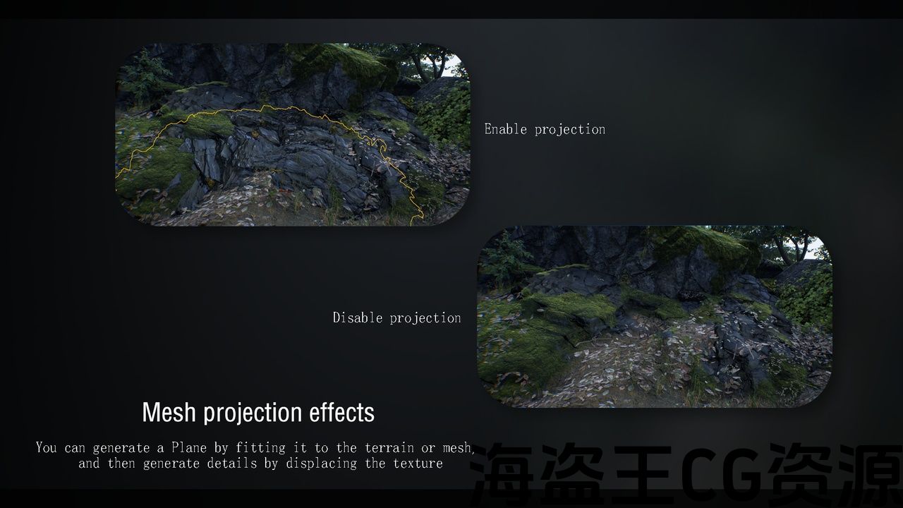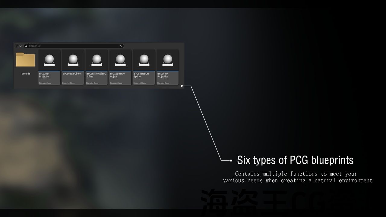 • 包含可投影到地形或网格上并自动调整的PCG蓝图