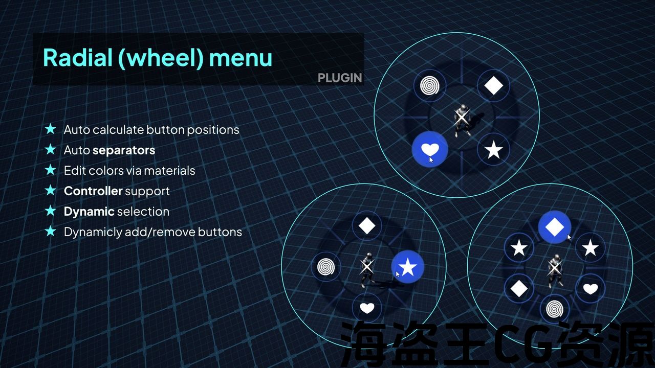 径向菜单,车轮菜单或Quickbar,但你称之为插件。 在这个产品中,您将轻松地构建菜单. 自定义选项允许您修改外观以满足您的需要。