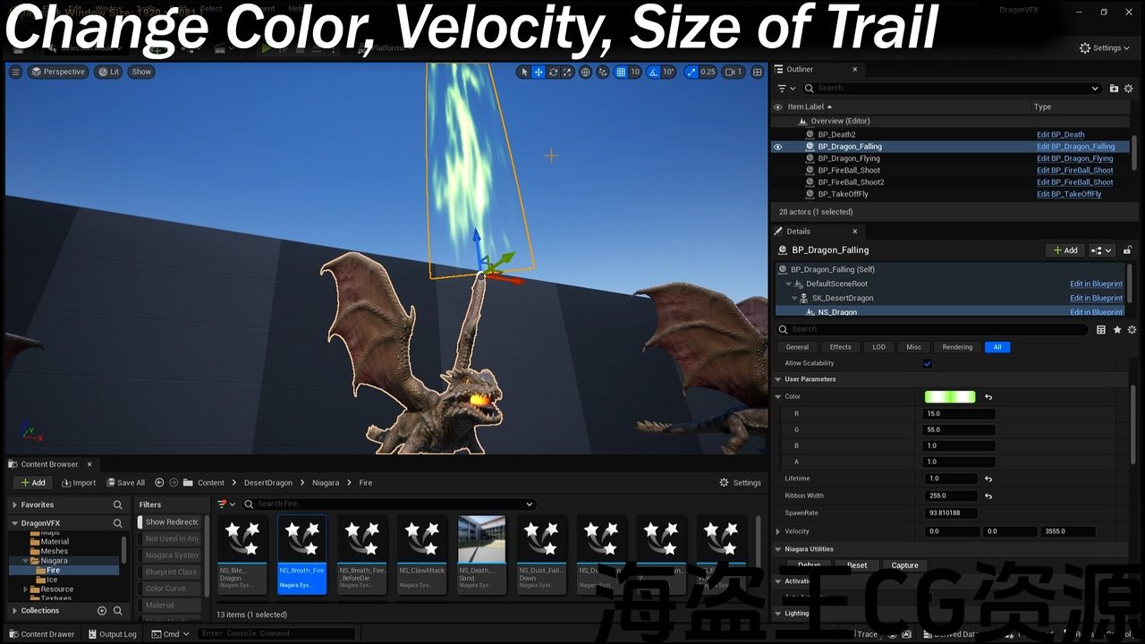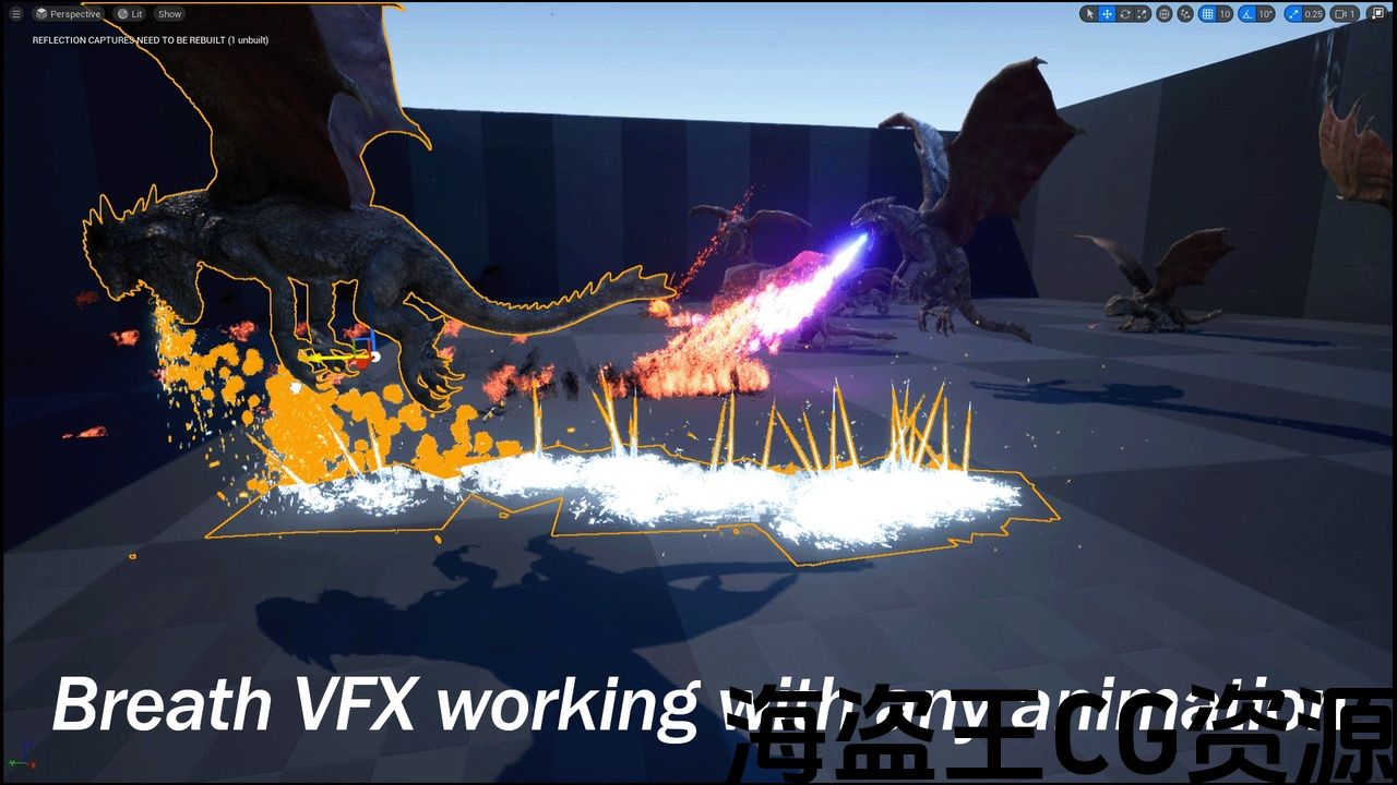 *龙网格和动画不包括在特效资源中。 龙资产在这里 :角色中的沙漠龙-UE市场(unrealengine.com)