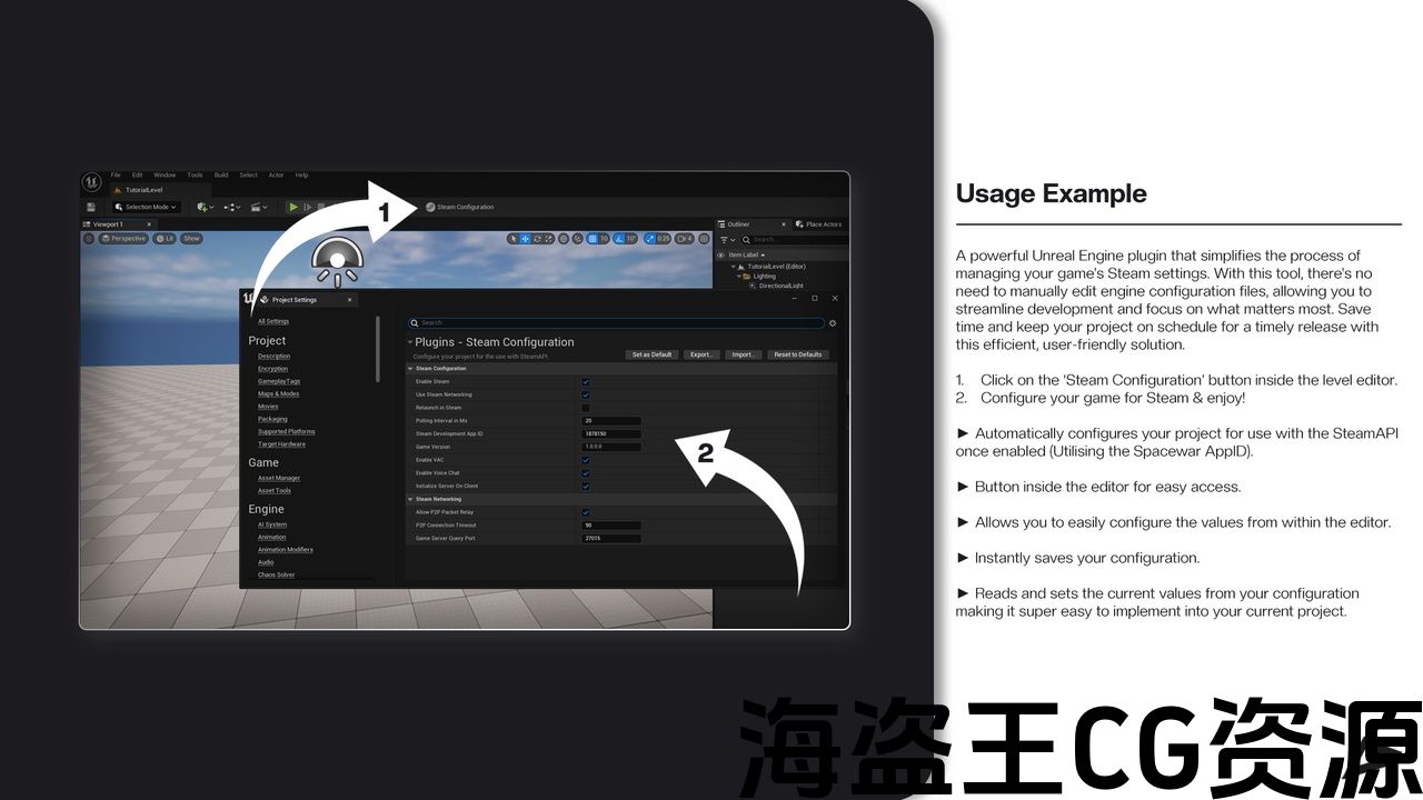 一个强大的虚幻引擎插件,简化了管理游戏的蒸汽设置的过程。 使用此工具,您无需手动编辑引擎配置文件,从而简化开发并专注于最重要的事情。 使用这个高效、用户友好的解决方案,节省时间并使您的项目按计划及时发布。 请使用文档 作为指导。