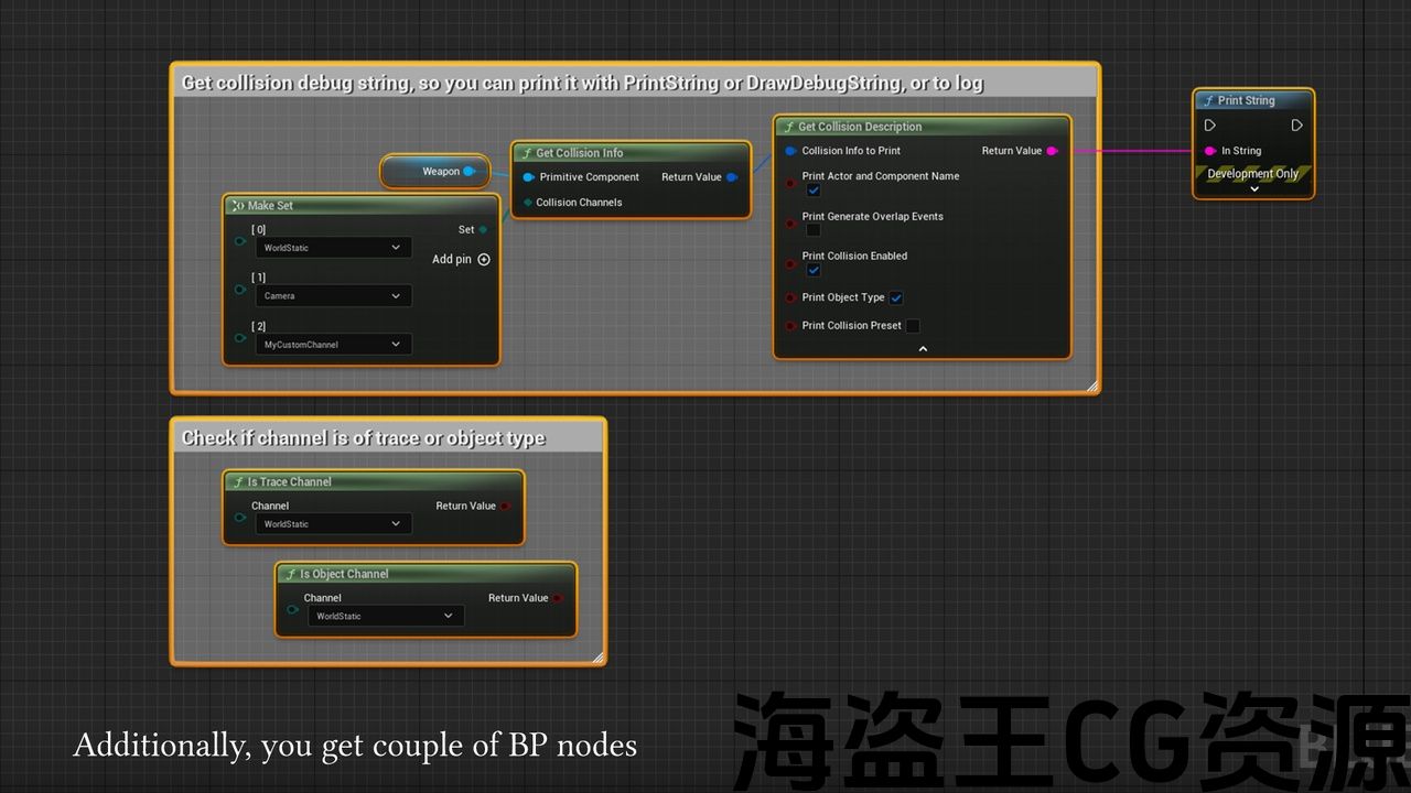 你知道的感觉,当你配置碰撞,没有什么工作如预期? 是的,我也是。 这就是我创建这个插件的原因。 它添加了一个”冲突”调试类别(在gameplay调试器上),用于打印原始组件的冲突设置。 此外,它还为您提供了一些bp节点,以便轻松查询和打印碰撞设置。