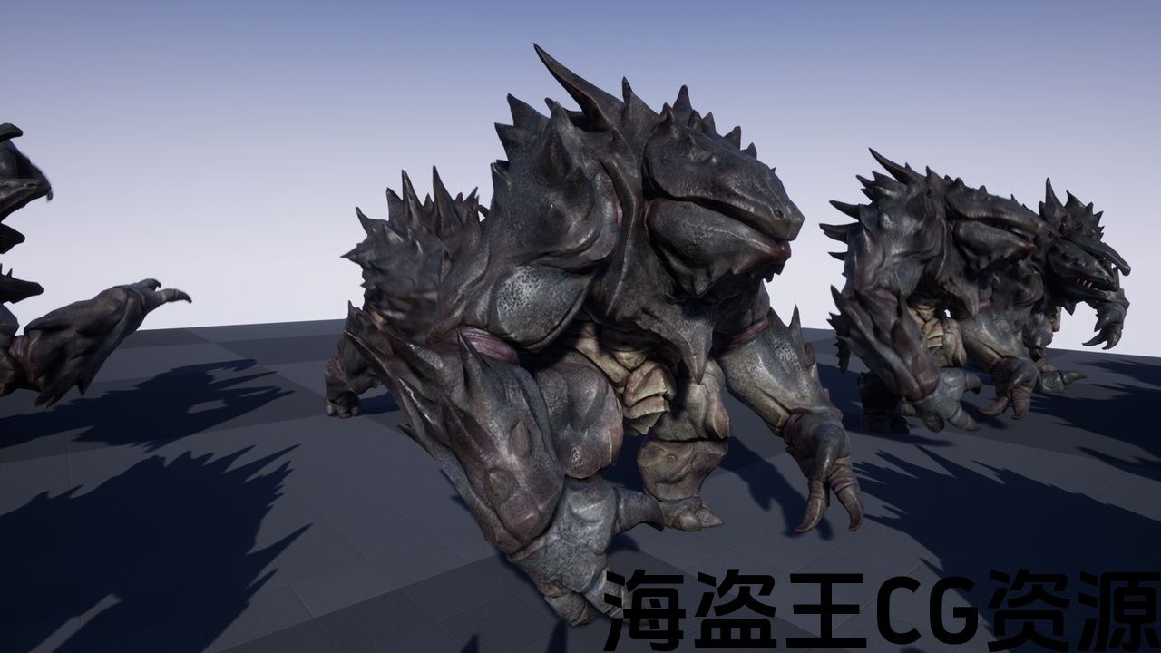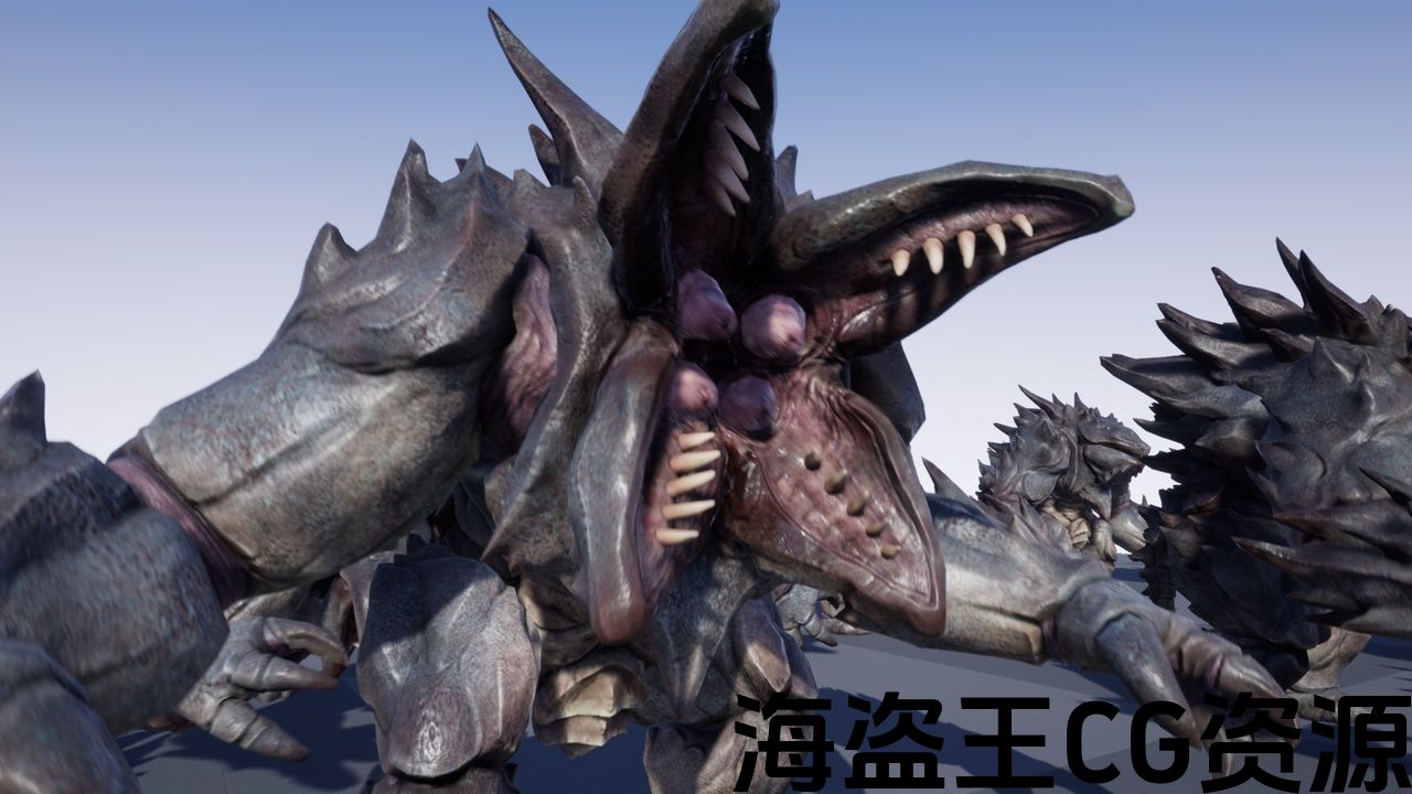 Geometry is 22 Ktris total (6 sub meshes: main body, 4 spitters and weak point). Rig is 54 bones. Model uses 1 material with a 4096*4096 PBR texture set.