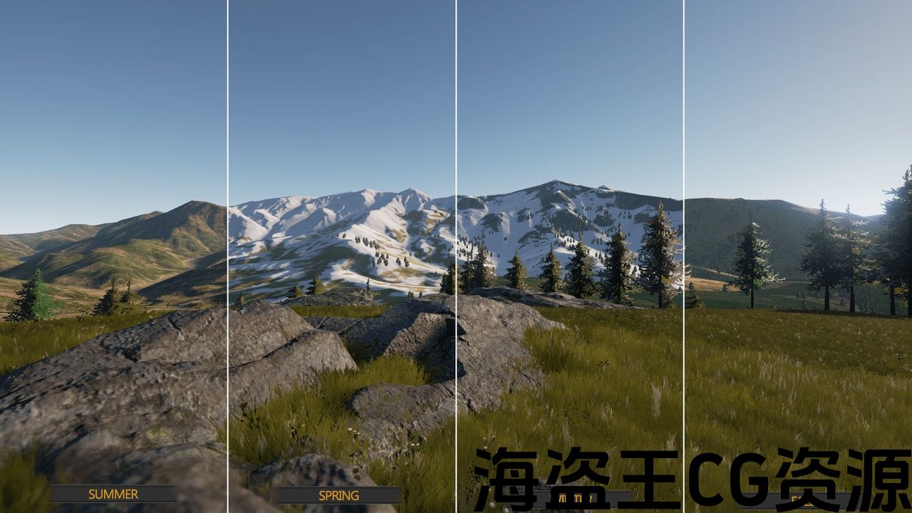 此包包含•*27模块化山网格。(夏季,秋季,冬季,春季•*5高山山网。(夏季,秋季,冬季,春季)-全地平线(360度)。*2阿富汗山网格。-(全地平线(360度)。*1沙漠沙丘网格。-(全地平线(360度)。*3峡谷网格。-(全地平线(360度)。*广告牌树(夏季,秋季,冬季)•12个示例场景。产品特点•*新的材料系统*新的纹理*可绘画的树•高多边形和低多边形的选项。 高多边形:60.000Tris. 低多边形:15.000Tris(用于移动)•每个网格4材料(夏季,秋季,冬季,春季)•每个网格11高品质4096*4096Splat地图纹理*Splatmap30高品质平铺地面纹理(2048*2048法线贴图和漫射)*可调