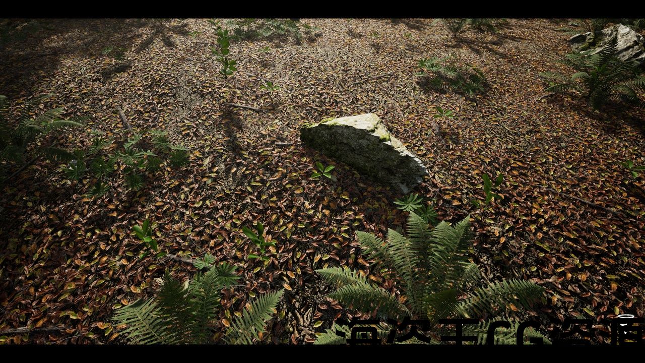 All 3d scanned meshes have soft-blending material setup with landscape and other 3d meshes.