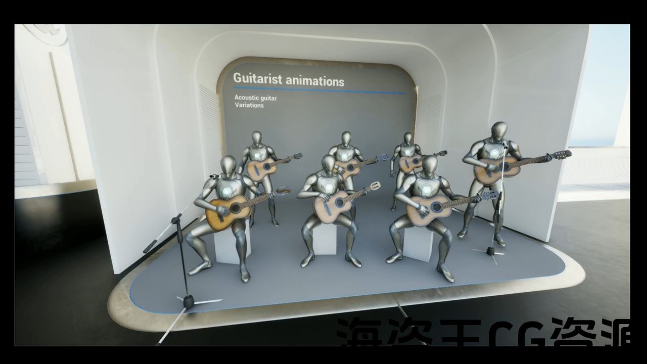 ✅ This asset pack contains 59 animation assets, including variations ,transitions, designed for both UE5 and UE4 skeletons. Perfect for casual or performance scenes involving a Guitarist NPC.