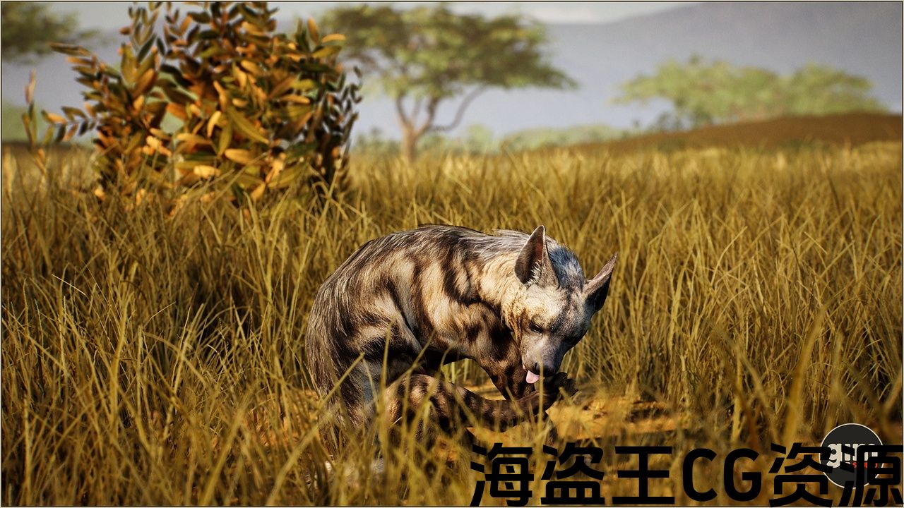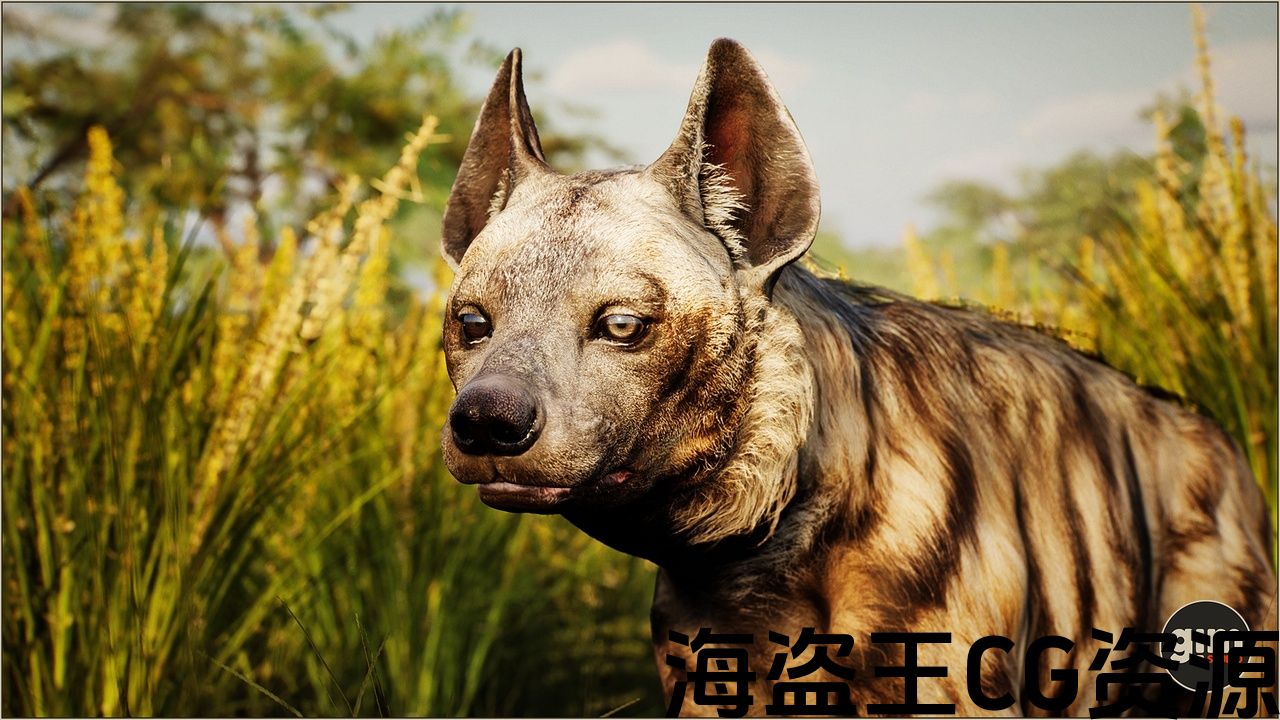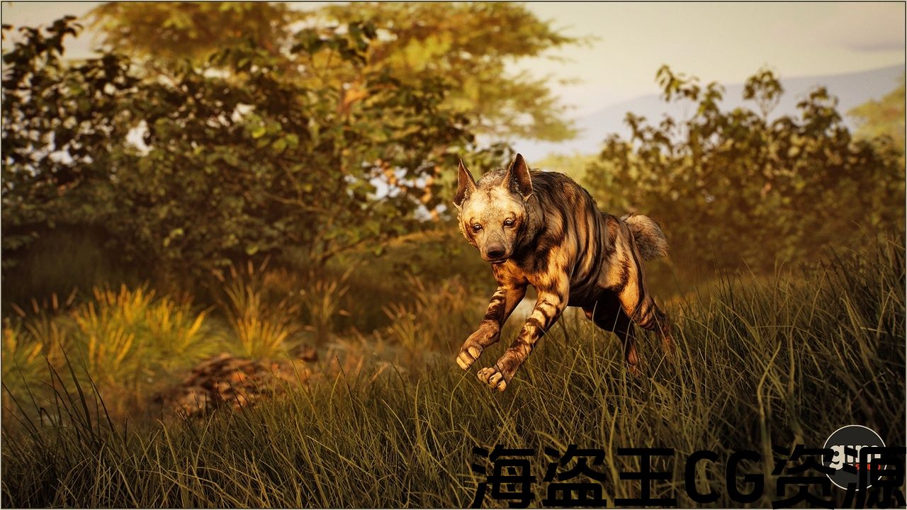 Striped Hyena with animations authored at 60fps and 4K Textures.