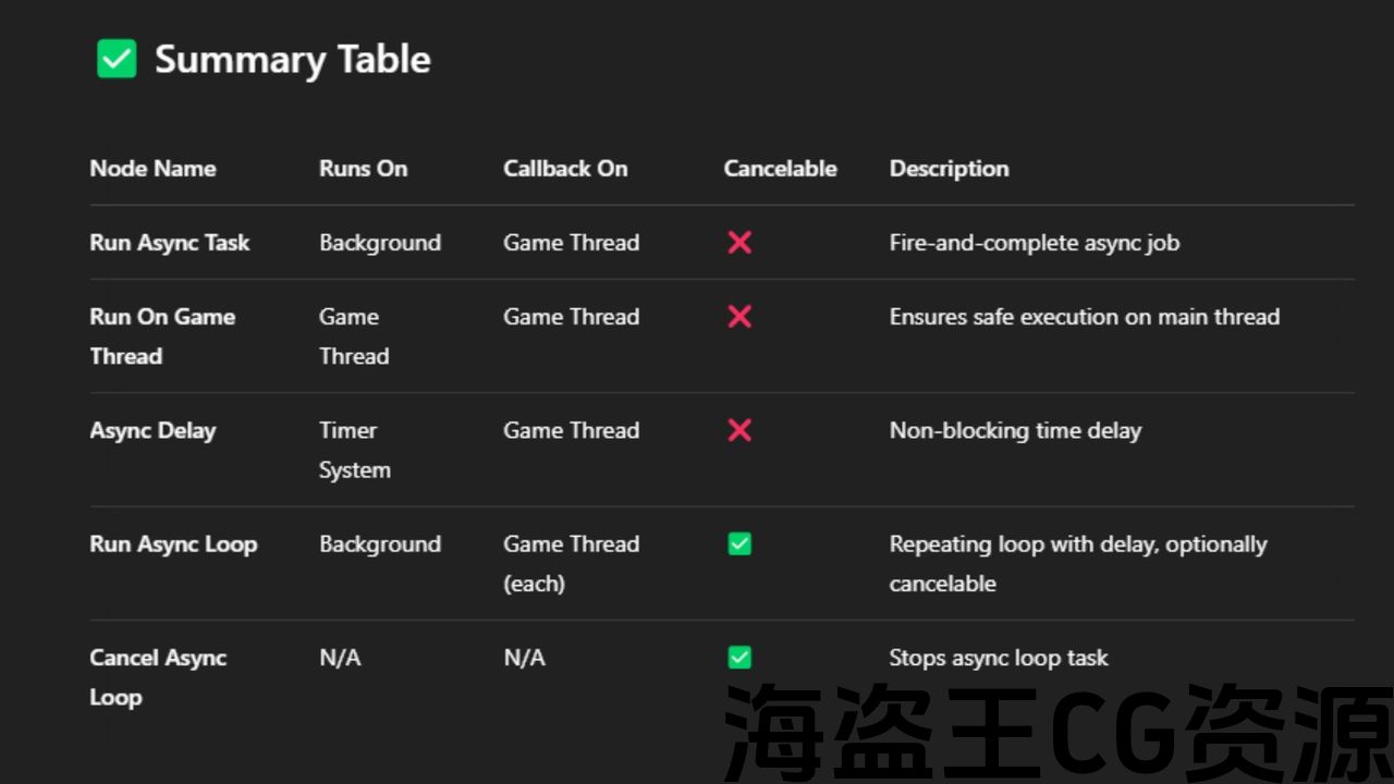 • Cleanly return from background threads to update UMG/UI or actor logic