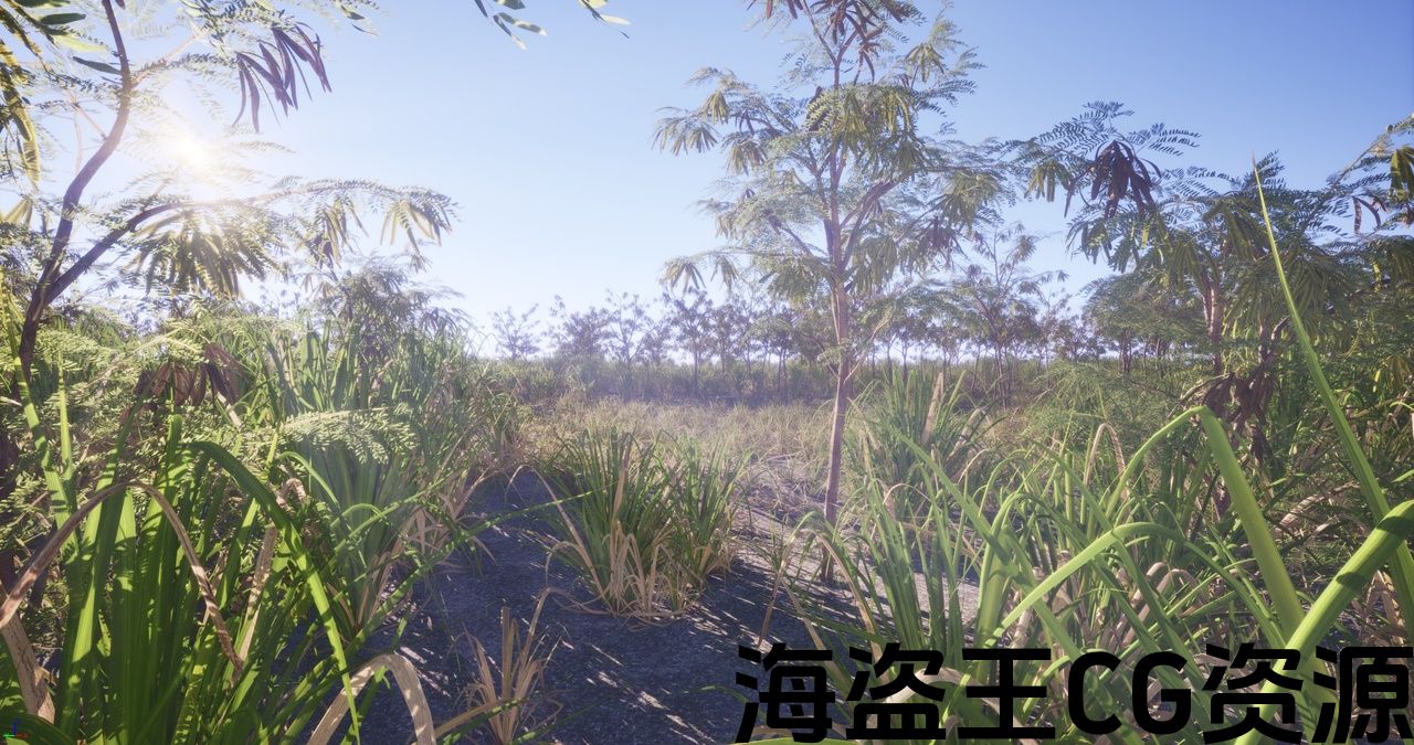 The pack comes with all meshes already configured as foliage types for use with landscapes, as well as an example scene showing off the performance of the assets when thousands are used in a single scene.