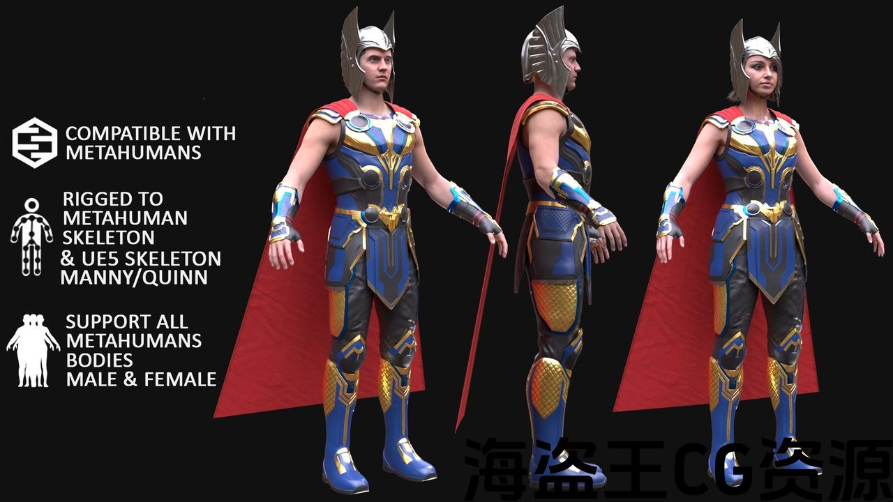 Realistic 3D model of Fantasy Outfit – Male/Female MH & UE5 Skeletons – Rigged