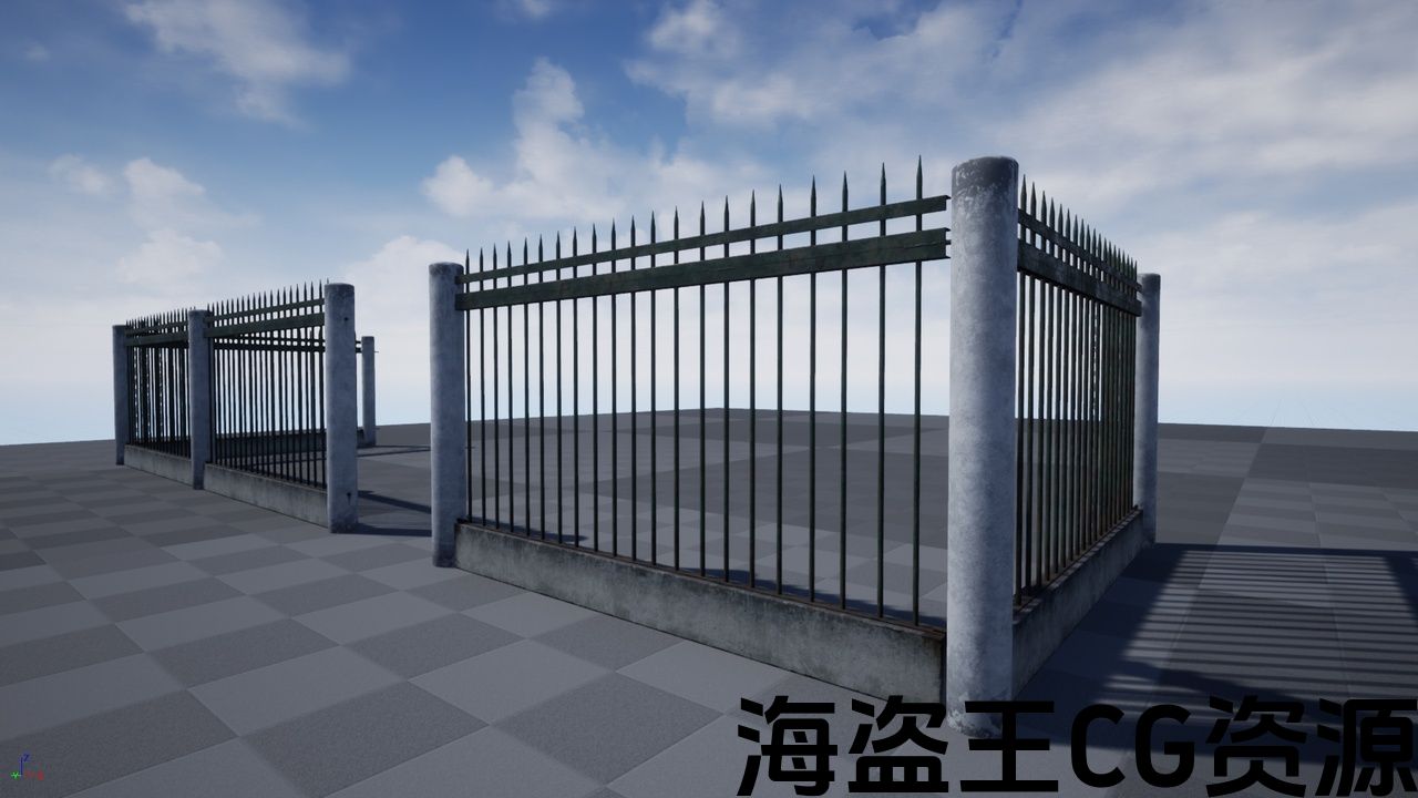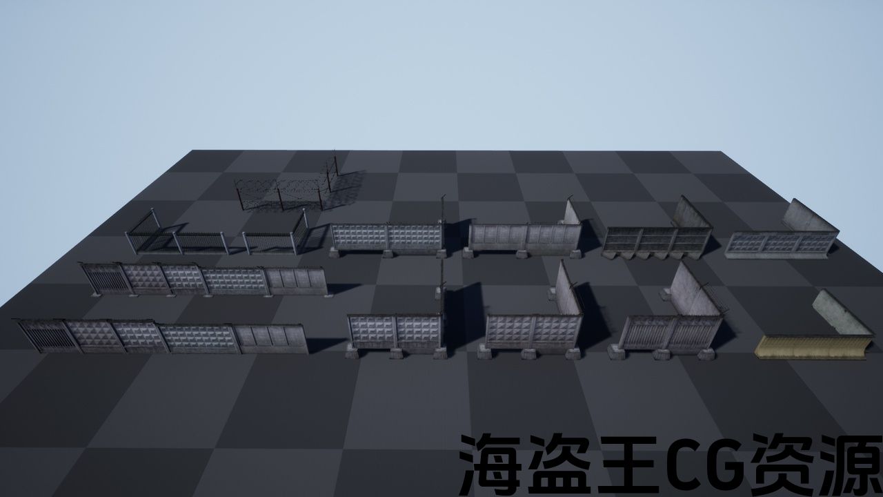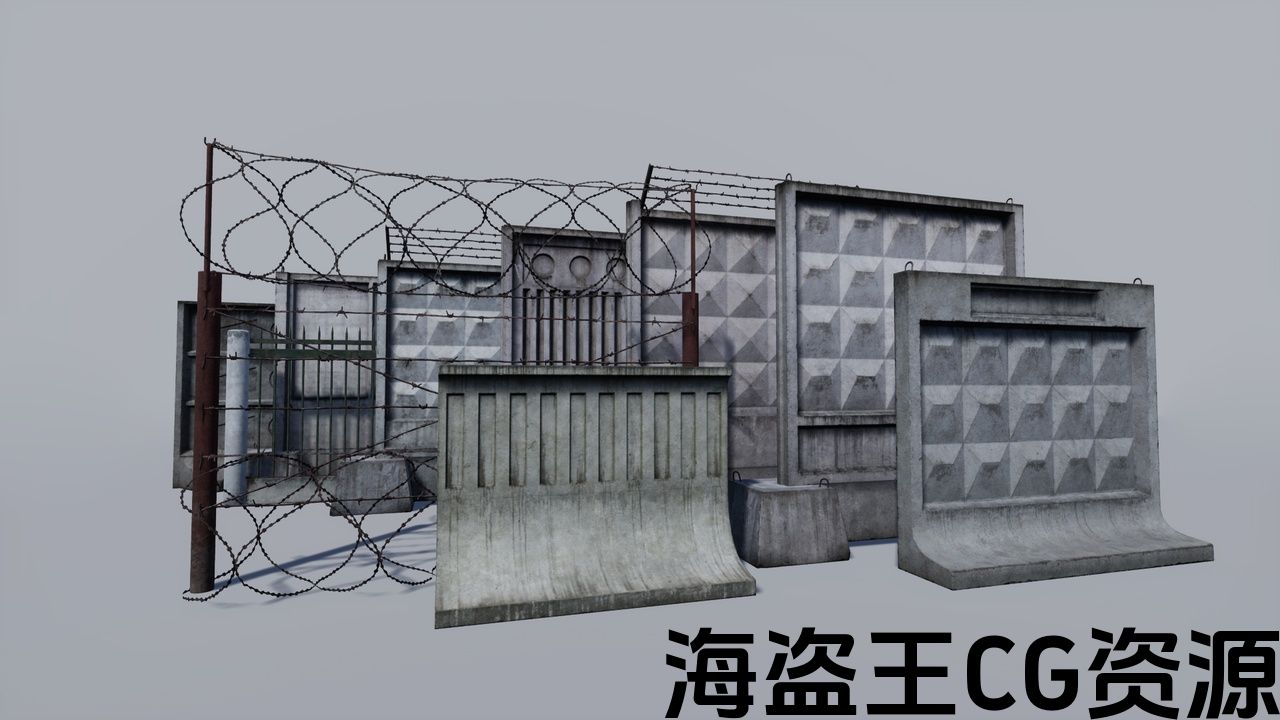 Concrete and metallic modular fence models for industrial, post-apocalyptic, prisons, and other dangerous areas for FPS/TPS-style games.