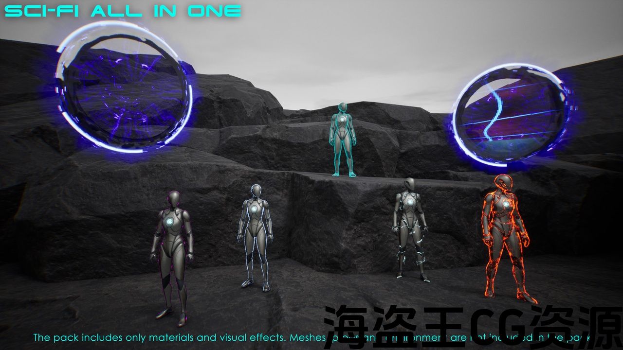 Important: The pack includes only materials and visual effects. Meshes, props and environment are not included in the pack.