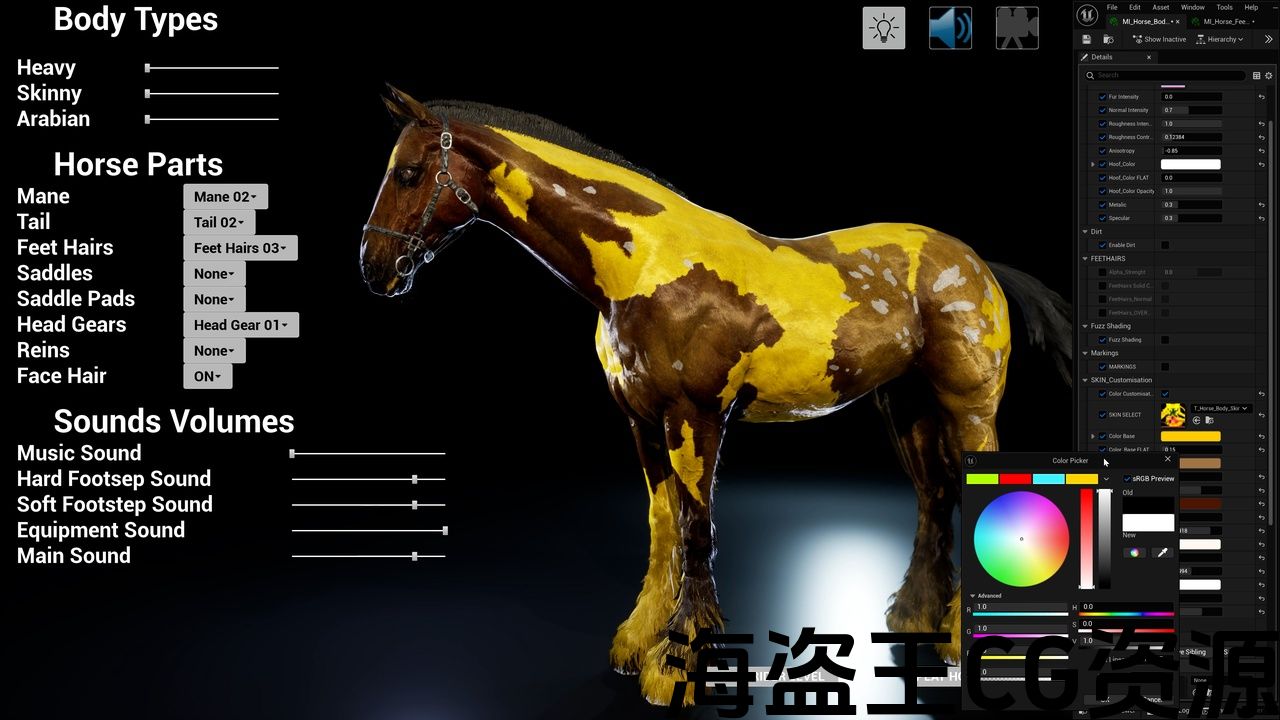 Saddles – All saddles and HeadGears has skin masks Option with 4 different customizable colors. Also Dirt channel