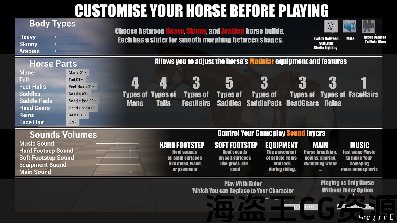 🛠️Customizable parts – Mane, Tail, Feet Hairs, Saddles(Optional SaddlePads) HeadGears, Reins.
