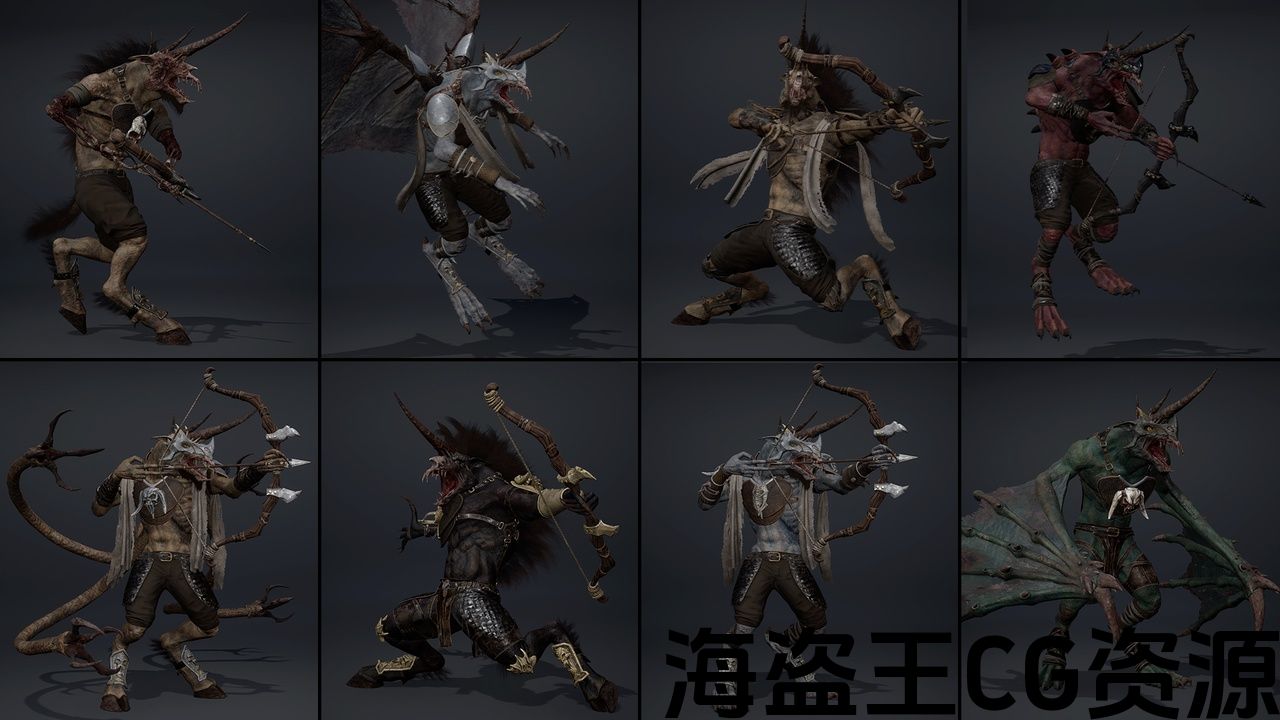 54 ready-to-use characters in armor: Skinny (2 options), Brutal (2 options), Damaged, Wings (2 options), Wings with Arms, Tentacles