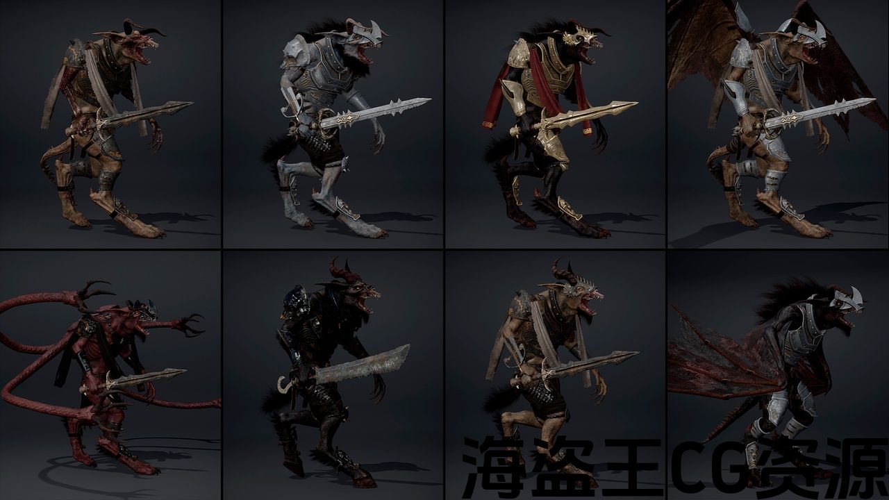 54 ready-to-use characters in armor: Skinny (2 options), Brutal (2 options), Damaged, Wings (2 options), Wings with Arms, Tentacles