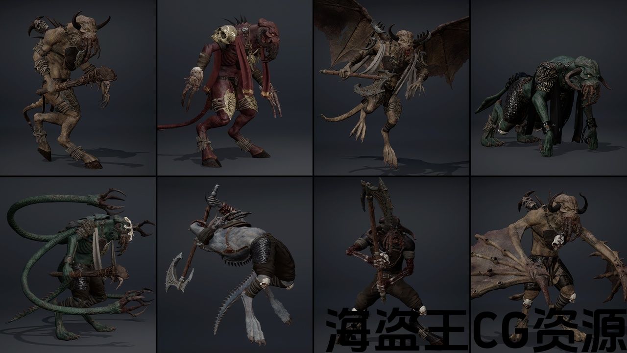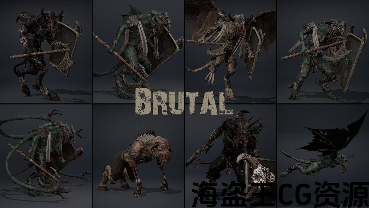 • 54 ready-to-use characters in armor: Skinny (2 options), Brutal (2 options), Damaged, Wings (2 options), Wings with Arms, Tentacles