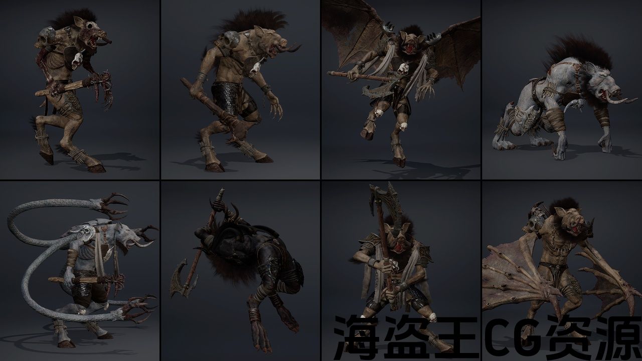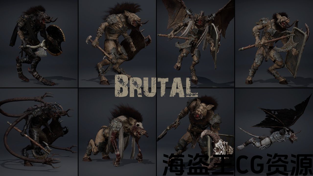 54 ready-to-use characters in armor: Skinny (2 options), Brutal (2 options), Damaged, Wings (2 options), Wings with Arms, Tentacles