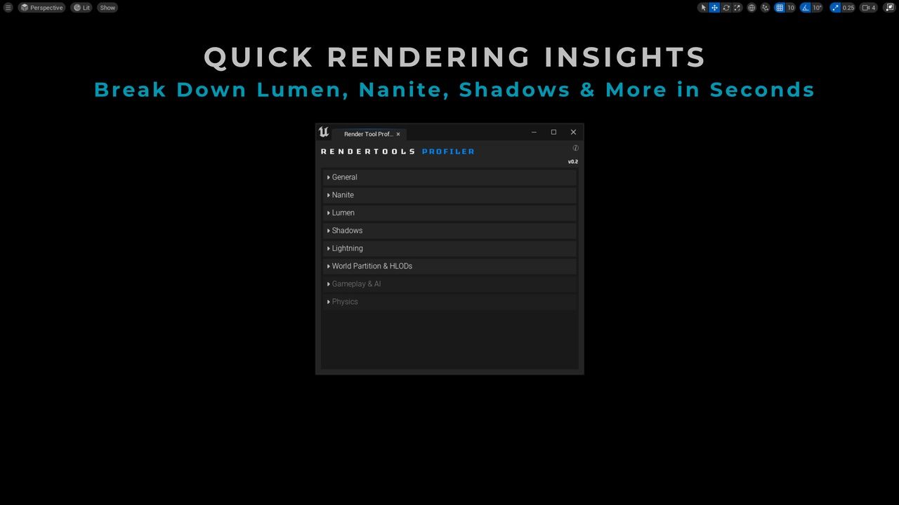 Streamline your performance analysis with RenderTools: Profiler – the essential toolkit for artists, tech artists, and developers looking to identify and fix rendering issues faster inside Unreal Engine 5. This tool brings together real-time insights, debug views, and optimization metrics in one easy-to-use interface.