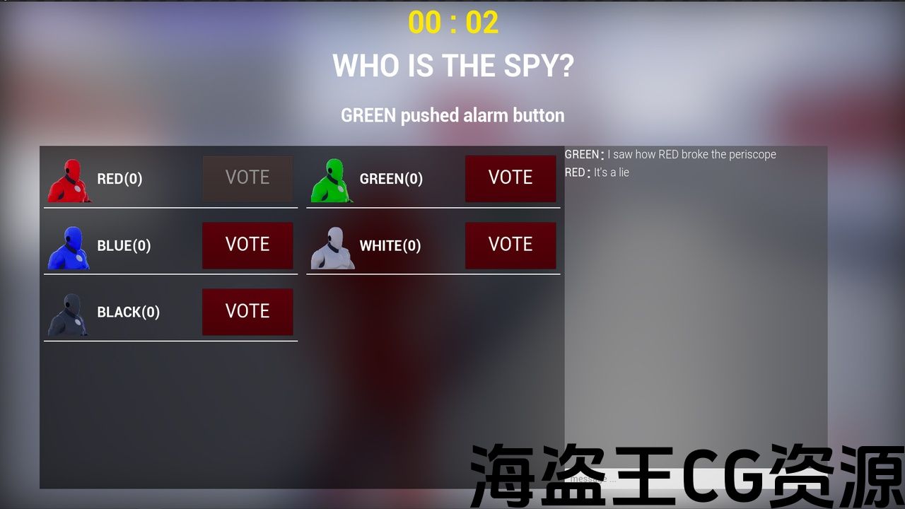 潜艇船员可以按下警报按钮或报告尸体,开始投票,讨论和找到间谍。
